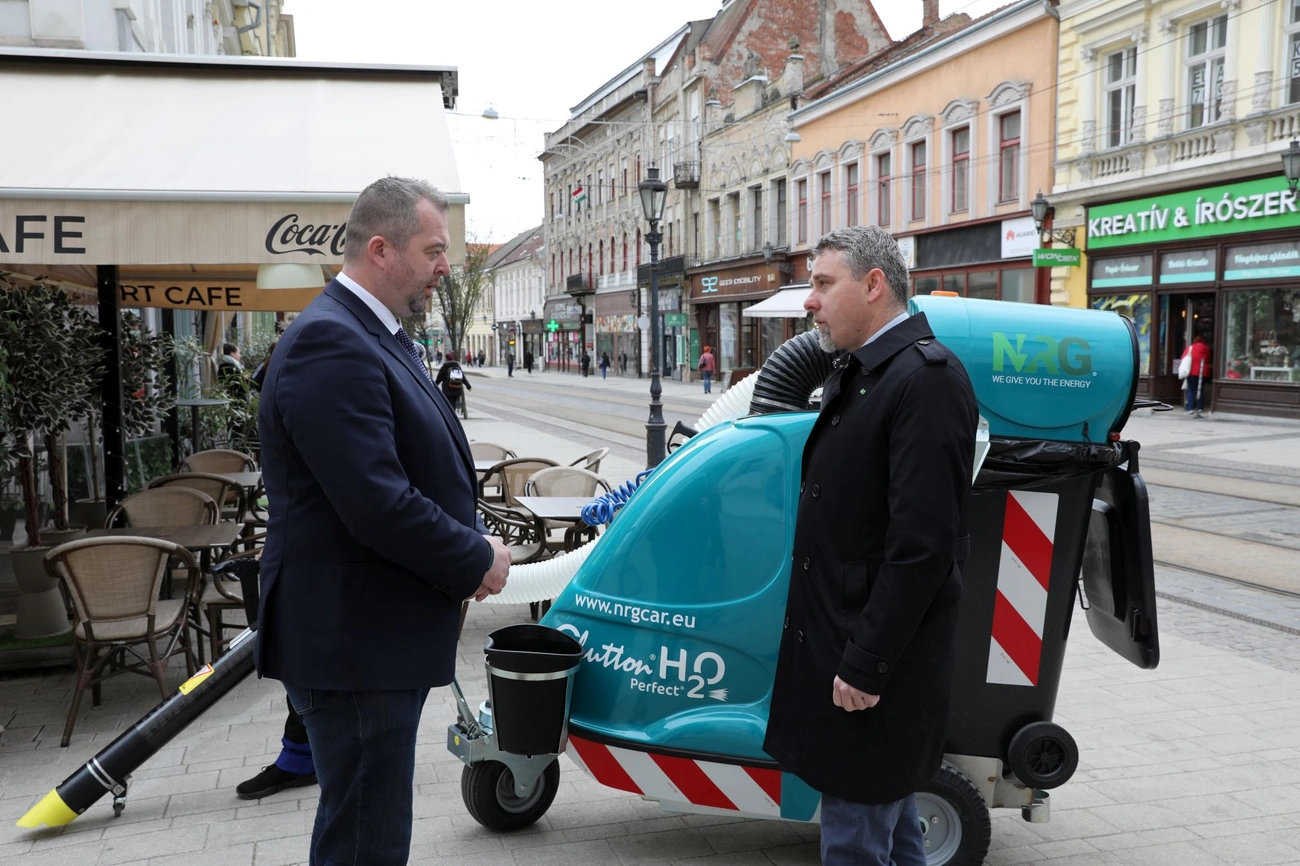 A szerdán debütáló 240 liternyi városi port és szennyeződést befogadni képes szívó-takarítógép száz százalékban elektromos, nagyon csendes és zéró füst kibocsátású, ezért tökéltesen illik a belvárosi környezetbe. Ugyanakkor a méretei lehetővé teszik azt is, hogy akár zsúfolt, szűkebb helyeken is elvégezzék vele a szükséges tisztítási műveleteket. Az akkumulátora egy feltöltéssel akár 12-16 órás üzemidőt biztosít az új takarítóeszköznek – ismertette Hollósy András Miskolc alpolgármestere a szerdai bemutatón.