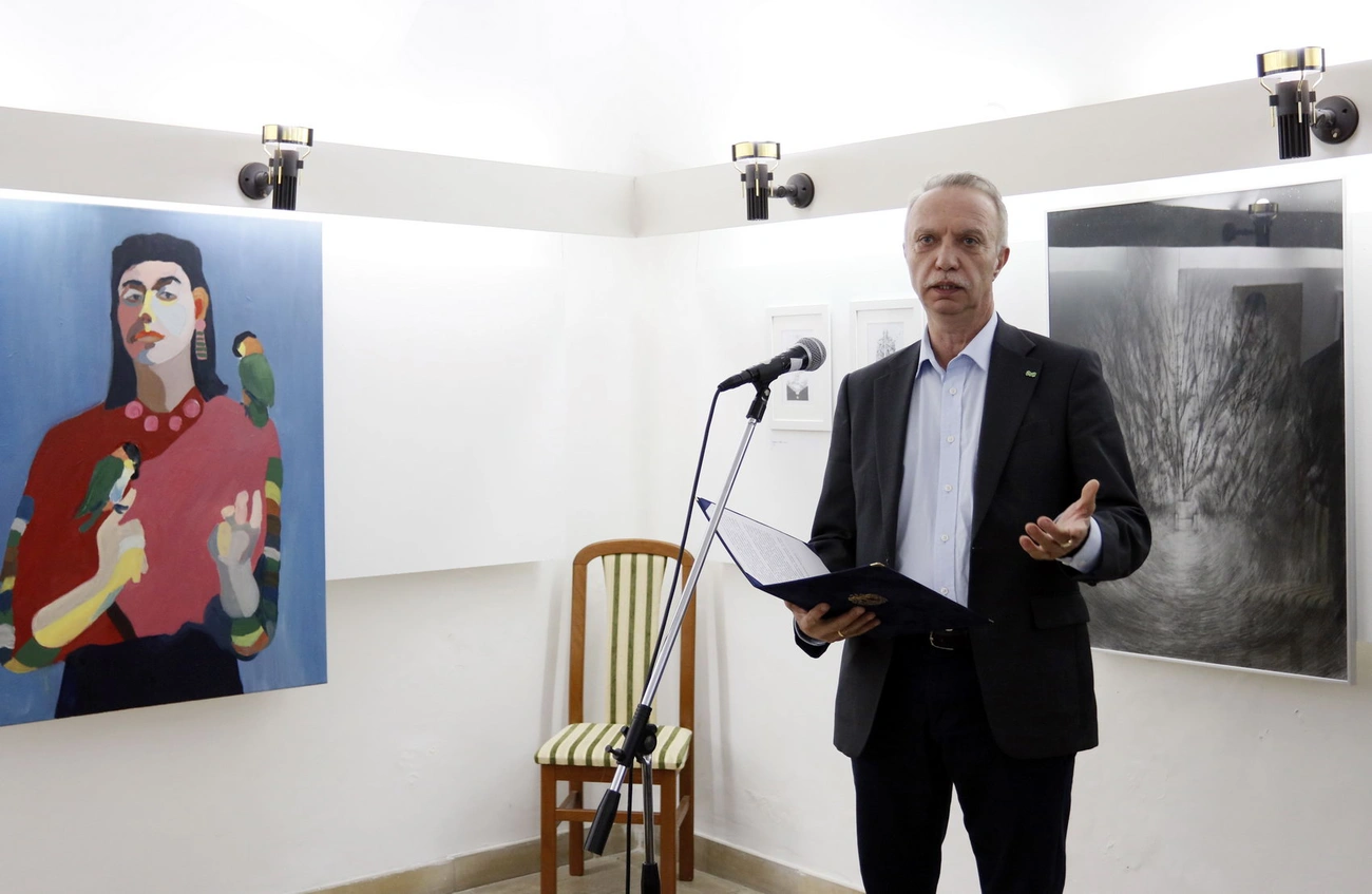 A mai alkalom arról szól, hogy azoknak a diákoknak, öregdiákoknak a műveiben gyönyörködjünk akik az iskolánkban végeztek különböző időben és folytatták ezt a csodálatos tevékenységet a művészetet – mondta el el köszöntőjében Holczinger Ferenc, a gimnázium igazgatója. Közülük többen művészek lettek, de olyanok is vannak köztük, akik a művészeten keresztül fejezik ki magukat, és számunkra nagyon fontos, hogy a jubileumi évben visszahívják és megtiszteljék őket a kiállítással.