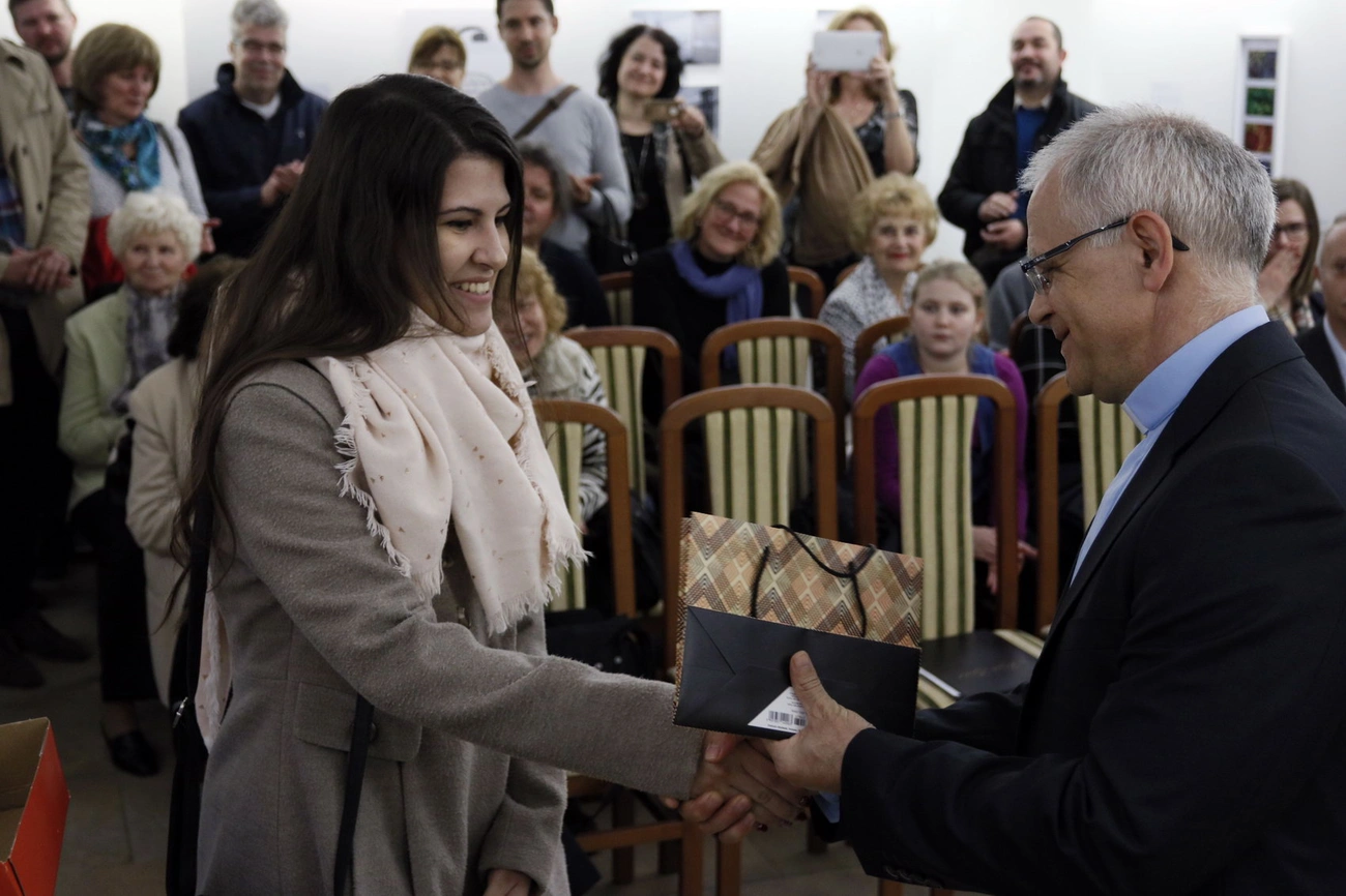 Építészmérnökök, festőművészek, grafikusok - összesen tizenhárom egykori diák örvendeztette meg munkájával a látogatókat. Mint mondták: szép emlékeket őriznek, szerettek a Jezsuitába járni és többen azóta is tartják a kapcsolatot egymással. A kiállítás nem tematikus: diákokat arra kérték, hogy olyan munkákból válogassanak, amelyek amelyek alkotótevékenységüket leginkább példázzák. A tárlatra festményeket, grafikákat, építészeti látványterveket hoztak el az öregdiákok. A kiállítás az első eseménye annak a jubileumi programsorozatnak, amelyet az iskola huszonöt éves fennállása alkalmából szerveztek.