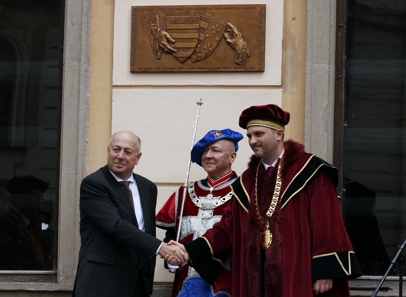 Kassa polgármestere, Jaroslav Polaček ünnepi beszédében emlékeztetett a hatszázötven évvel ezelőtt történtekre. – 1369-ben, május 7-én Nagy Lajos király Diósgyőr várában adott adománylevelet Kassa városának, ezzel a szabad királyi város privilégiumaival ruházva fel városunkat. Ez az emléktábla, remélem, nemcsak esztétikai élményt nyújt majd a kassaiaknak, hanem tartalmában is felkelti érdeklődésüket a város múltja iránt – mondta a helyi polgármester, aki emlékeztette az ünneplőket arra, hogy a város napjához kapcsolódó ünnepségsorozaton, megnézhetik a Nagy Lajosról szóló darabot.