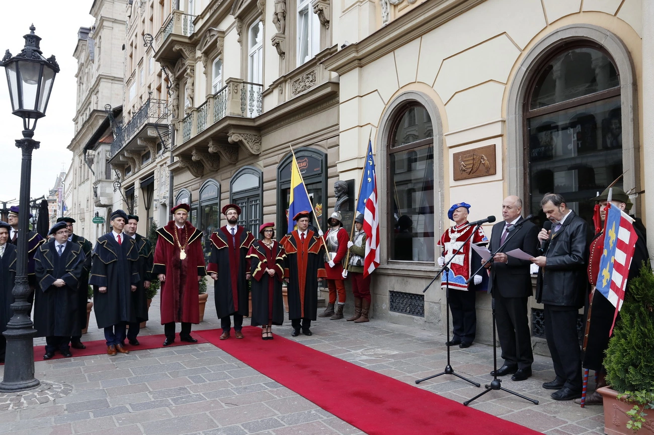 A szökőkút egy órai harangjátéka után nem sokkal Kassa főterén, a régi városháza bejáratánál dobszó hirdette az ünnepség kezdetét. A kapu melletti falon fehér lepel díszelgett, egy emléktáblát rejtve. Ennek felavatása volt az első program az egyhetes rendezvénysorozaton, ahol Kassa város napját ünneplik a helyiek.