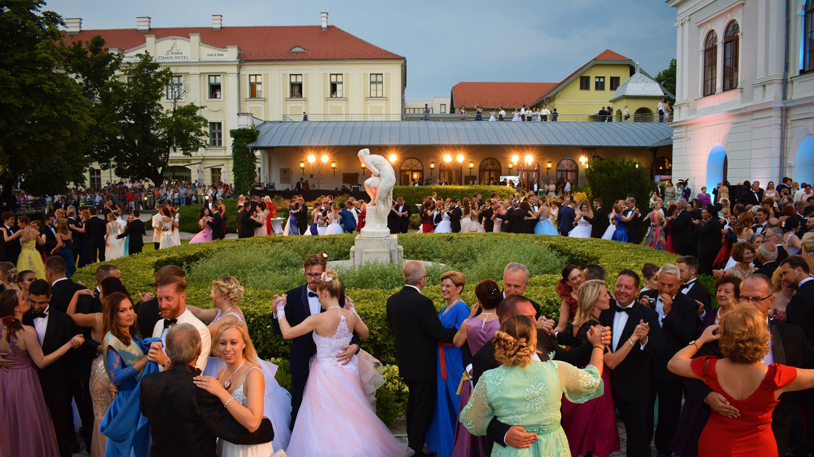 A bál előtt a Vaszary Villa kertjében gyülekeznek a vendégek, ott akasztják a hölgyek nyakába a sorszámozott herendi porcelánszíveket, majd zenés menet indul az Anna Grand Hotelba.