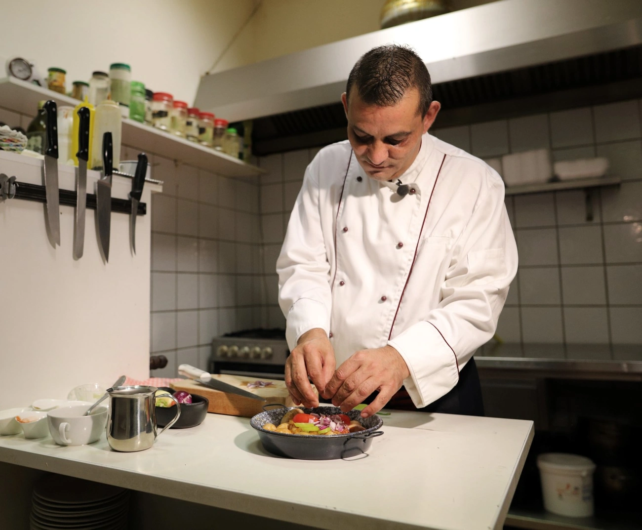 Bár nem vadat készítettünk, nem távolodtunk el a magyar konyhától: az étterem séfje, Bitó Tivadar azt mutatta meg, hogyan készül náluk a hagyományos nemzeti konyha egyik alapköve, a kakasherepörkölt. Kifejezetten megosztó ételről van szó: sokan rá se bírnak gondolni, hogy a kakasok miattuk kukorékoljanak néhány oktávval magasabb hangon, míg mások szerint a sarkantyús baromfik legnemesebb része kiváló lábasba való alapanyag. Bár a név maradt, a kakasherét a legtöbb helyen pulykára váltották: így történt ez a Vendelin Étteremben is, ahol egyébként az étlapon is szerepel ez a fogás.