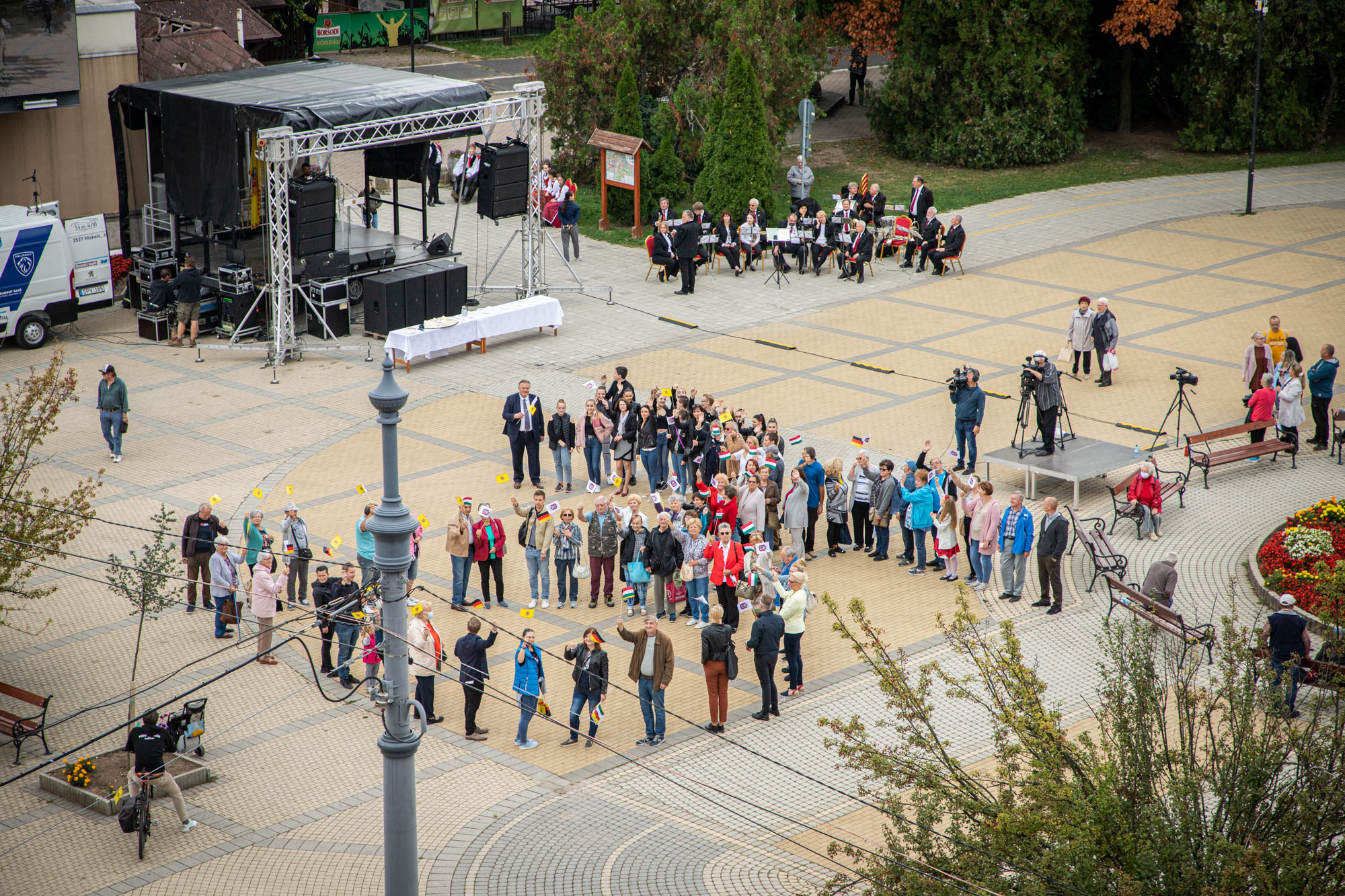Úgy oldották meg a szervezők a 25 éve tartó aktív testvérvárosi kapcsolat közös ünneplését, hogy mindkét városban kivetítőkön keresztül követhették a másik fél programjait a jelenlévők. Miskolcon a Szent István téren található óriáskivetítő volt ennek a platformja. A gyakorlatban ez azt jelentette, 15 percenként váltakozott, hogy éppen melyik város programját nézhetik az emberek mind Németországban, mind itthon.