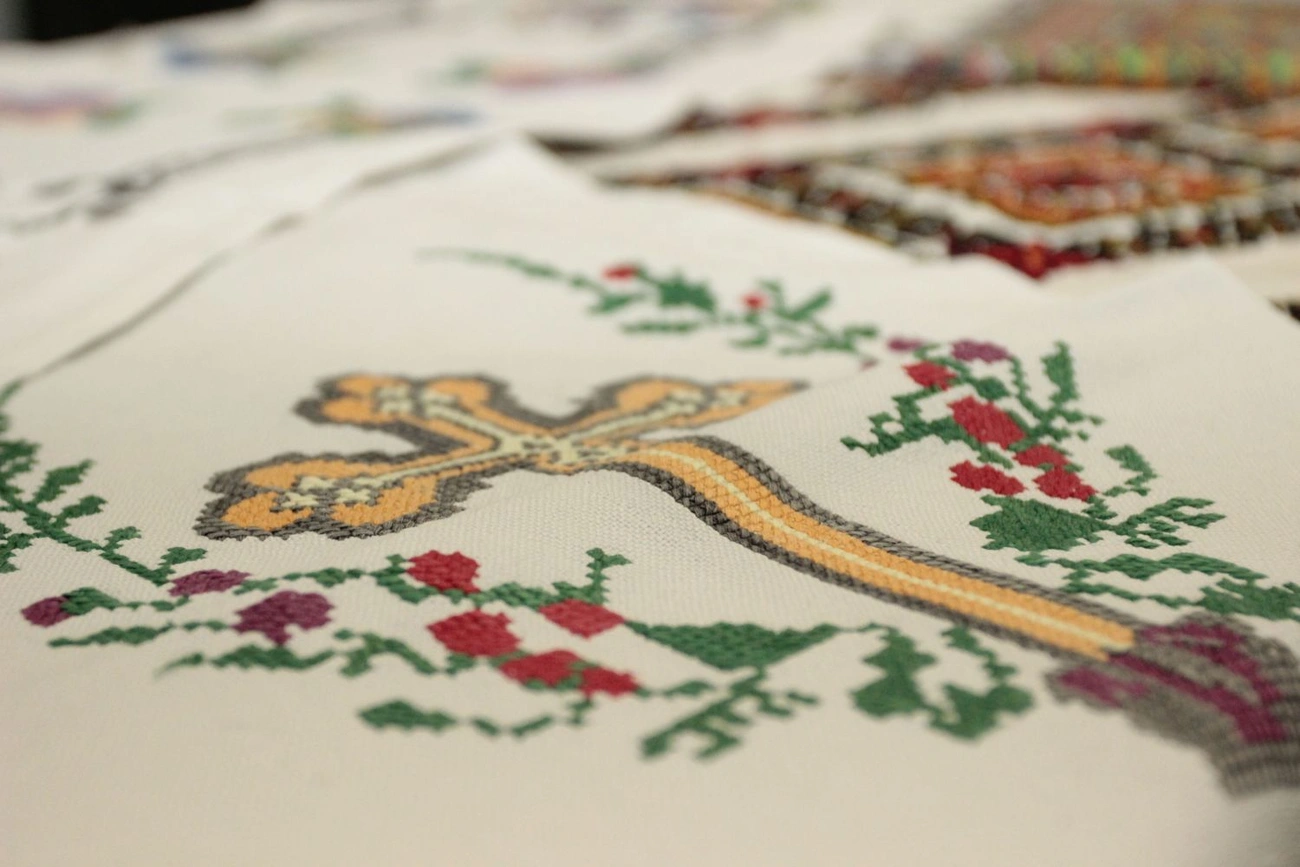 A megnyitó résztvevői a fényképek mellett mintegy száz éve hímzett, törülköző formájú visivánkákat is megnézhettek, amik a Magyaországi Ukrán Kulturális Egyesület kollekciójából voltak.