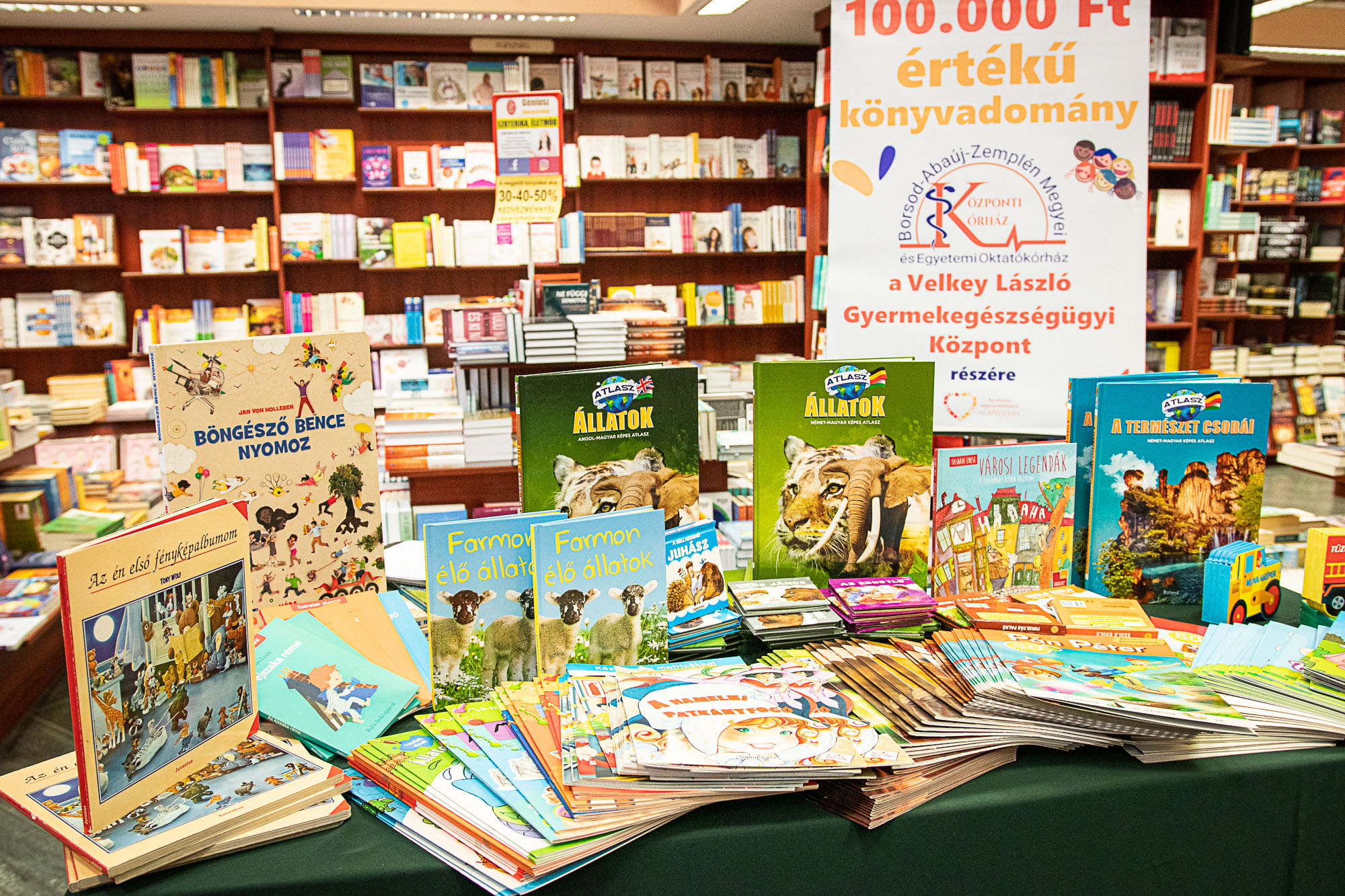 Kondás Vilmos, a Géniusz Könyváruház tulajdonosa elmondta, negyvenötezer könyvcímből választották ki azokat, amiket a kórházba szántak. – Van közöttük kifestő, foglalkoztató, mesekönyv, kétnyelvű és ismeretterjesztő is. Megtudtuk ugyanis, hogy több korosztály is van a kórházban. A könyv pedig mindig örök marad, az olvasás lélekgyógyító és munkára fogja a képzeletünket – mondta, majd hozzátette, igaz az alapítvány mottója, miszerint „Egy ember, aki olvas, ezer életet él... Egy ember, aki soha nem olvas, csak egyszer él.”