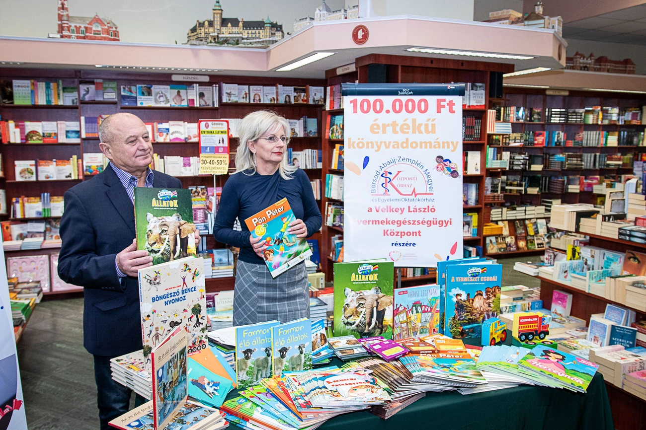 Több mint százhatvan könyvet adományozott a B.-A.-Z. Megyei Központi Kórház kis betegeinek a Géniusz Könyváruház szerdán. A százezer forint értékű ajándék egy olvasásnépszerűsítő akció része.