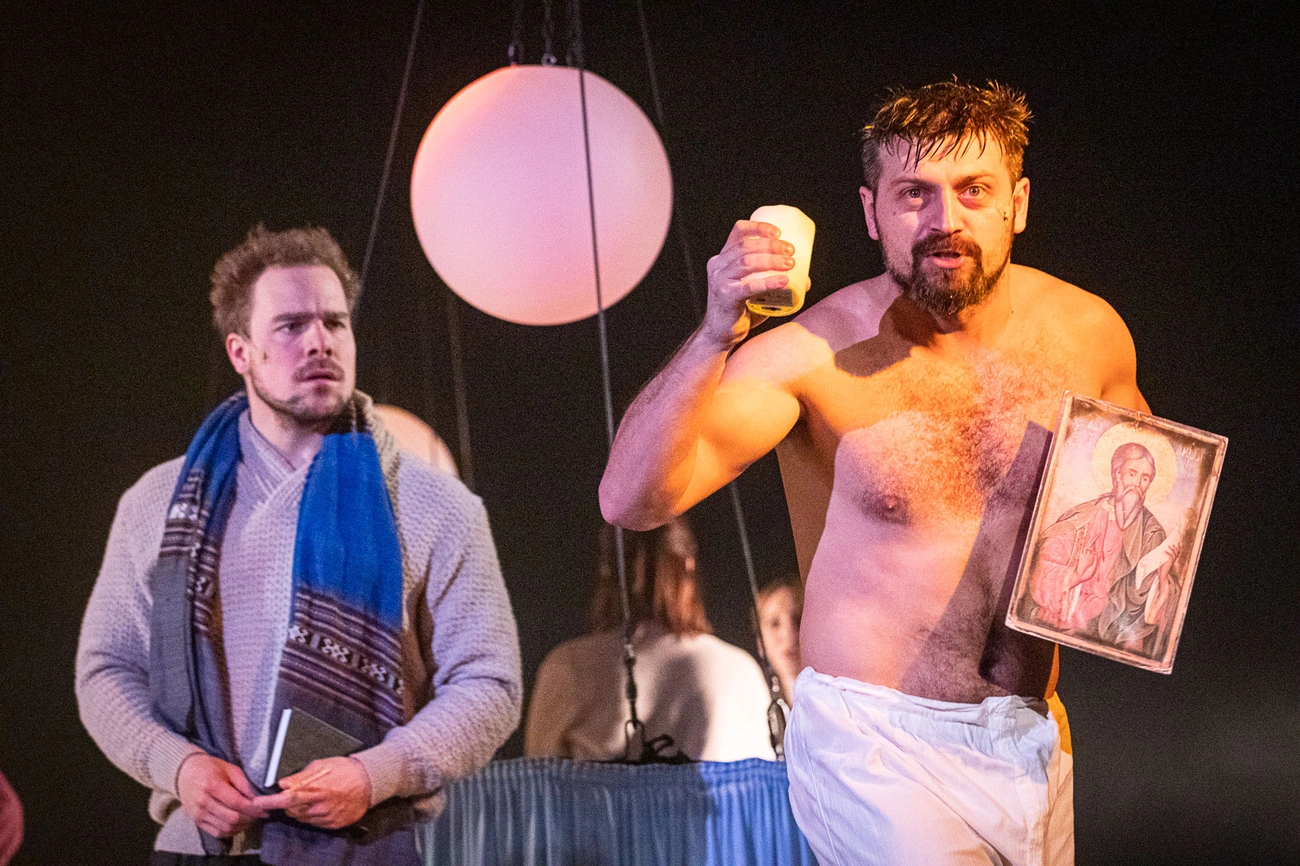 – Egy minden ízében különleges világú egész estés előadásra számíthat a néző, amelyben a prózai előadásoktól megszokottnál jóval nagyobb szerepe van a zenének, mely legnagyobb részt Cser Ádám zeneigazgató munkája. Mellette pedig egy igazi, néhol költői, néhol filozofikus nagy mesére a földi és földöntúli hatalmak hálójában nyugalmát kereső esendő emberről – ajánlja Szőcs Artur az előadást.