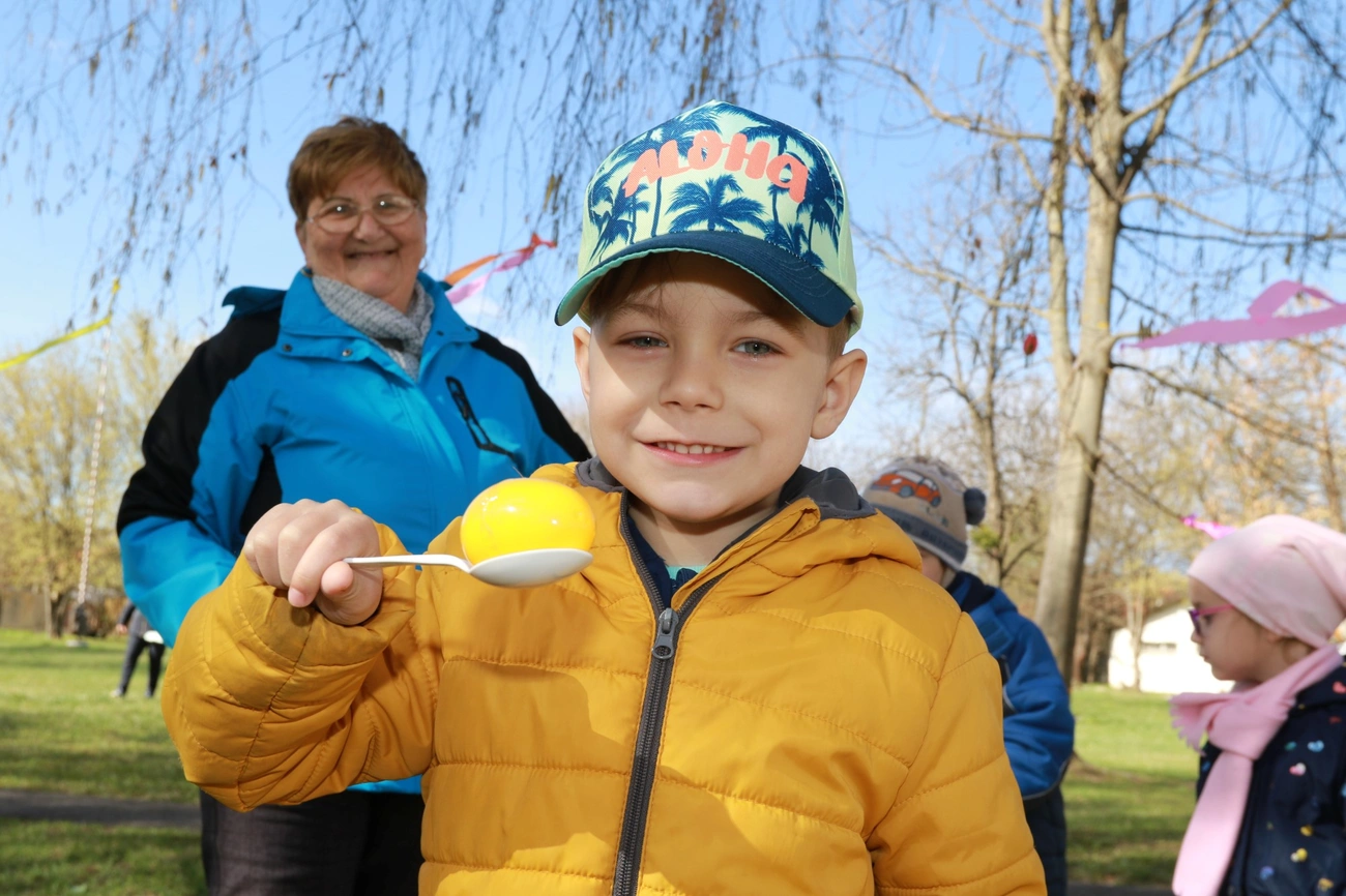 Másrészről pedig a húsvéti hagyományokat kívánták ápolni közösen a gyerekekkel, mindezt kicsit természetközeli környezetben – ezért is nagy volt az öröm, hogy végül a feldíszített parkban tudták megrendezni a program egy részét.