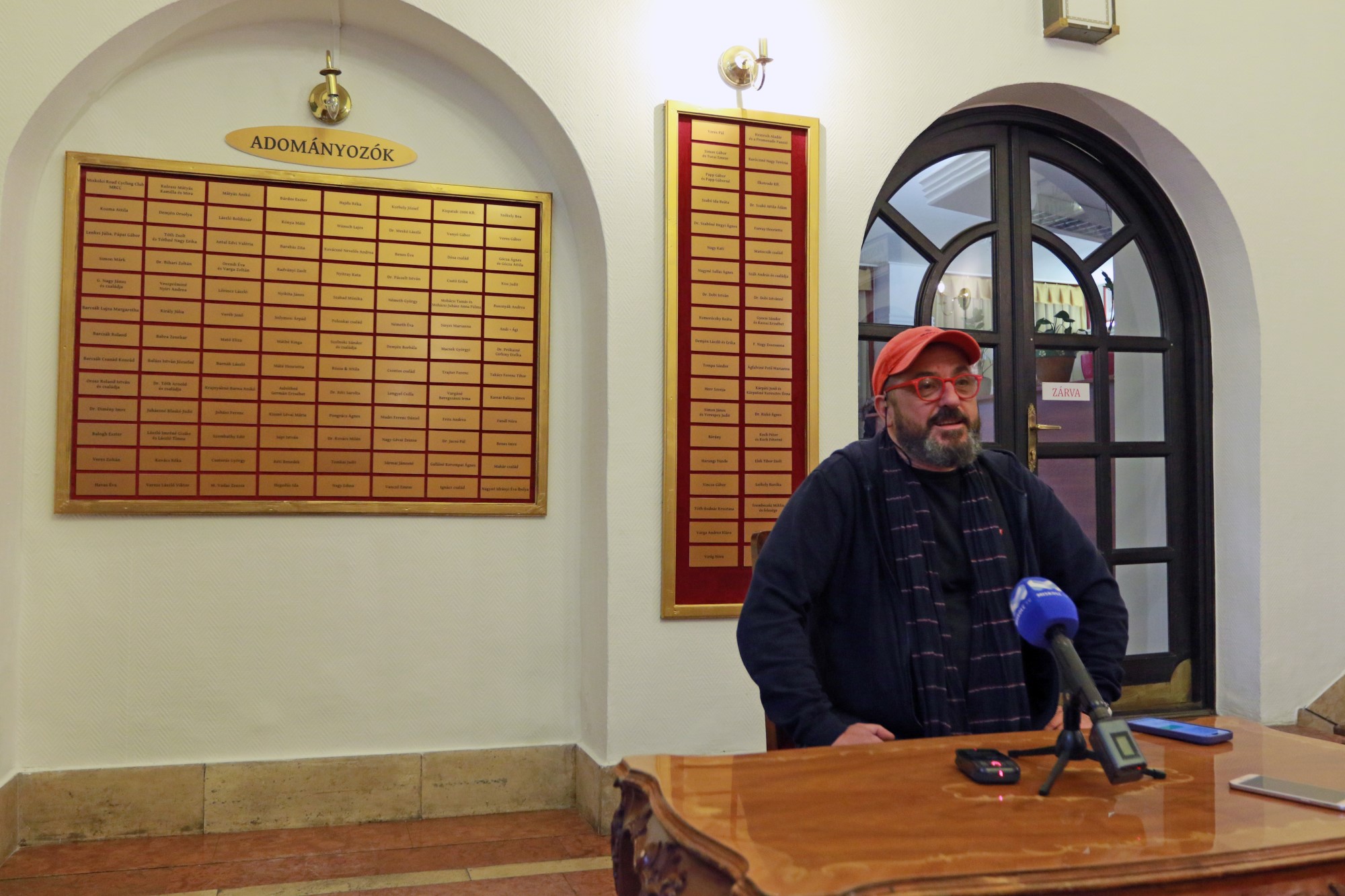 A színházigazgató megköszönte annak a közel 150 adományozónak, akik az eddigi gyűjtés során hozzájárultak a teátrum további működéséhez, névtáblájuk pedig ezáltal felkerült a falra. Mint mondta, egy névtelenséget kérő adományozó például a 168 ezer forintos nyugdíjából adományozott 40 ezer forintot a színháznak, mert nem tudja elképzelni, hogy az izgalom és öröm nélkül éljen, amit a színházba járás jelent neki.
