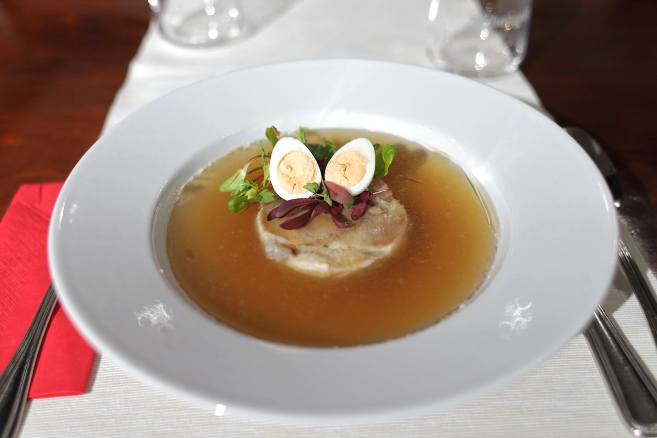 A kocsonya egyébként nem számít kifejezetten magyar ételnek, Európa-szerte előszeretettel készítik, sőt, még koreai változata is van. Rengeteg variáció ismert: alapvetően sertésből csinálják, de készíthető csirkéből, borjúlábból, de akár halból is. A Via Piano Éttermet működtettető Komáromi József, aki a képünkön látható reszkető remeket főzte, elárulta, mi a jó kocsonya titka.