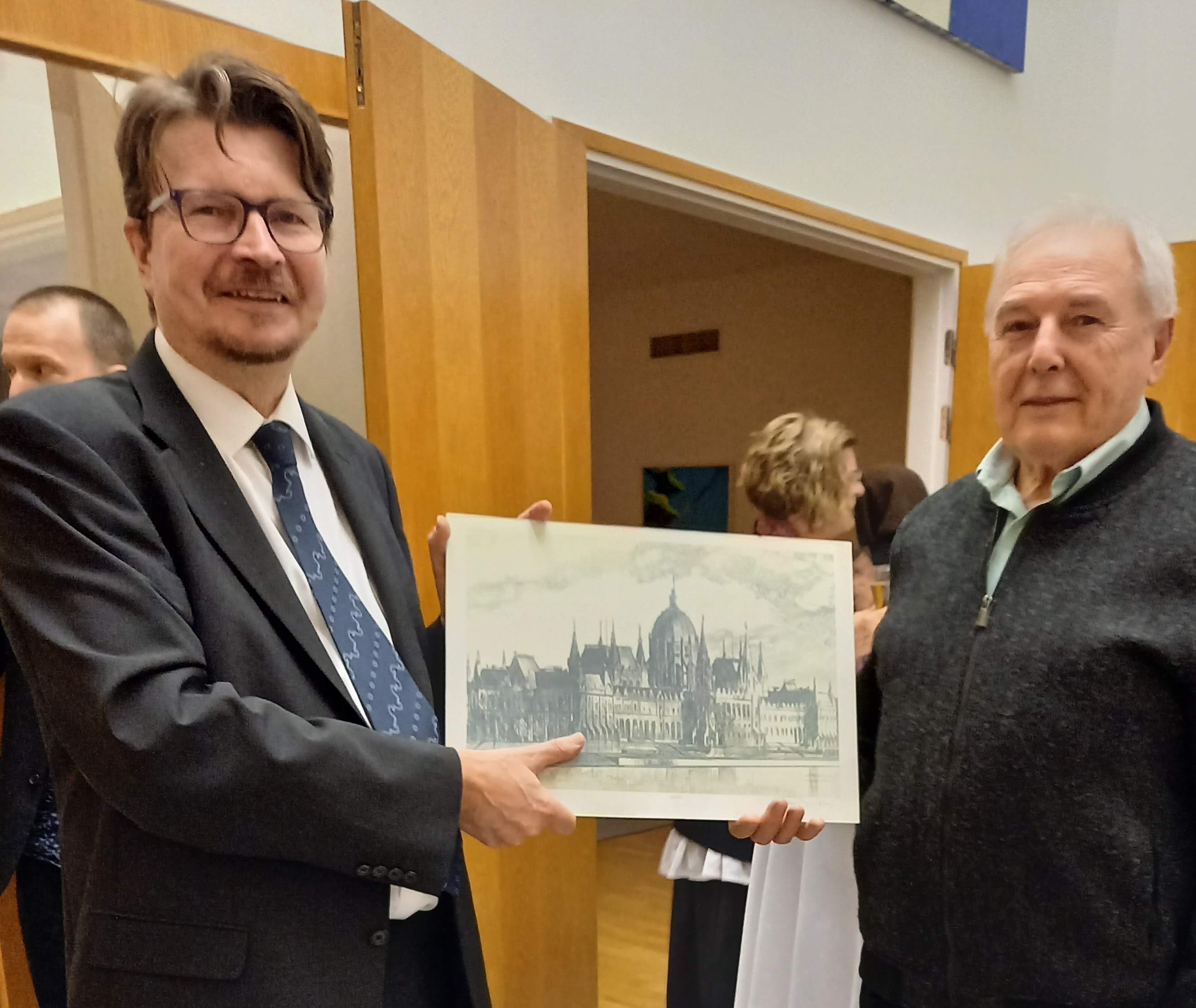 A nagykövet átvette az Országháza rézkarcot. Fotó: magánarchívum