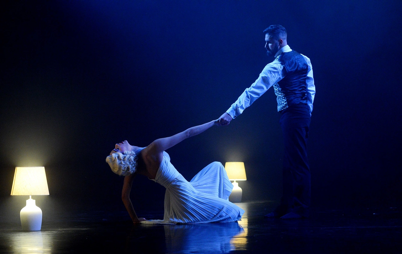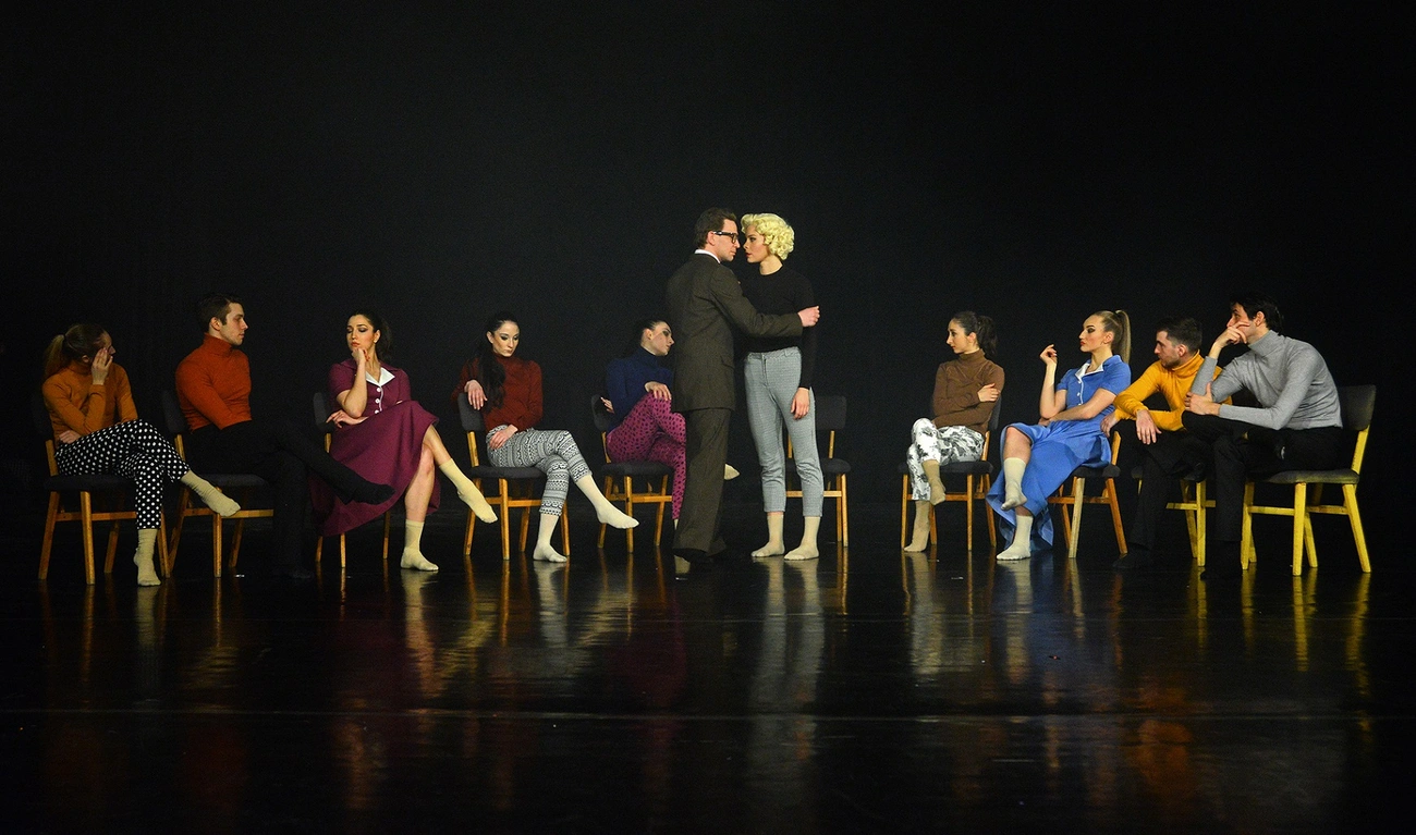 – Azt gondoltam, hogy ennél a darabnál elkerülhetetlen, hogy a látványvilágot alátámasszuk különböző technikai, vizuális eszközökkel, pláne, ha egy olyan emberről készítünk előadást, akinek az életében a mozi, a film ennyiremeghatározó volt. Péter nagyon izgalmas anyagot készített, rendkívül kreatív, ahogyan például egy filmes casting során a „nagy hollywoodi gyár” működését megjeleníti a vásznon – teszi hozzá a rendező-koreográfus. Mint mondja, a koreográfia tele van érzelmekkel, fájdalommal.