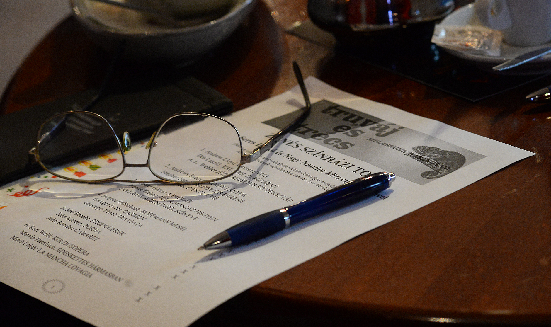 Ezúttal a zenés színházé volt a főszerep: a Művészetek Háza (MÜHA) kávézójának vendége Seres Ildikó Jászai Mari-díjas színésznő, operettprimadonna volt, a dalalávalót pedig Nagy Nándor zeneszerző, a Miskolci Nemzeti Színház korrepetítora szolgáltatta, aki zongorán kísérte a művésznőt. Jézus Krisztus szupersztár, Carmen, Evita, Padlás: csak néhány jól csengő előadás