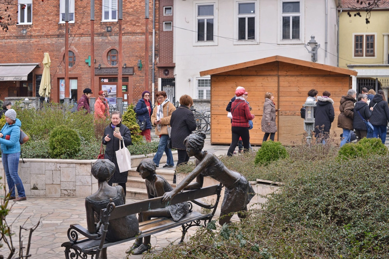 - Természtesen nem hagyjuk ki a Szinva teraszon lévő lányokat, és a színház melletti szobor parkban is megnézzük a Rózákat, Déryné Széppataki Rózát és Jókainé Laborfalvi Rózát. Ahonnan a Pannónia Hotelben és az épület homlokzatán lévő, Fürtös György-féle kerámiadíszekhez vezet az utunk - sorolta ízelítőül az állomásokat az idegenvezető.