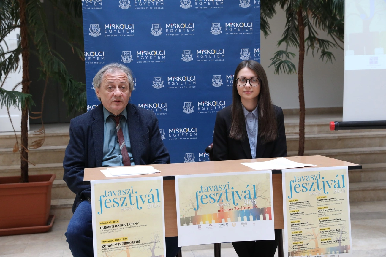 - A tavaszi fesztivál kiváló alkalom arra, hogy a Miskolci Egyetem Bartók Béla Zeneművészeti Karának diákjai megmutathassák tudásukat a közönségnek. Szólistaként és együttesben is szerepelnek majd. Továbbá kamarazenekarok és énekkarok is színesítik az elősorban komolyzenei előadások palettáját – ismertette Papp Sándor, a zeneművészeti kar dékánja a rendezvény beharangozó sajtótájékoztatóján szerdán, a Zenepalotában. Hozzátette: lehetőséget biztosítanak a fesztiválon fiatal tehetségeknek, egyebek mellett egy 10 éves cseh és egy 14 éves lengyel zongoraművész palánta ad koncertet majd, akik már most művészi szinten játszanak a hangszeren.
