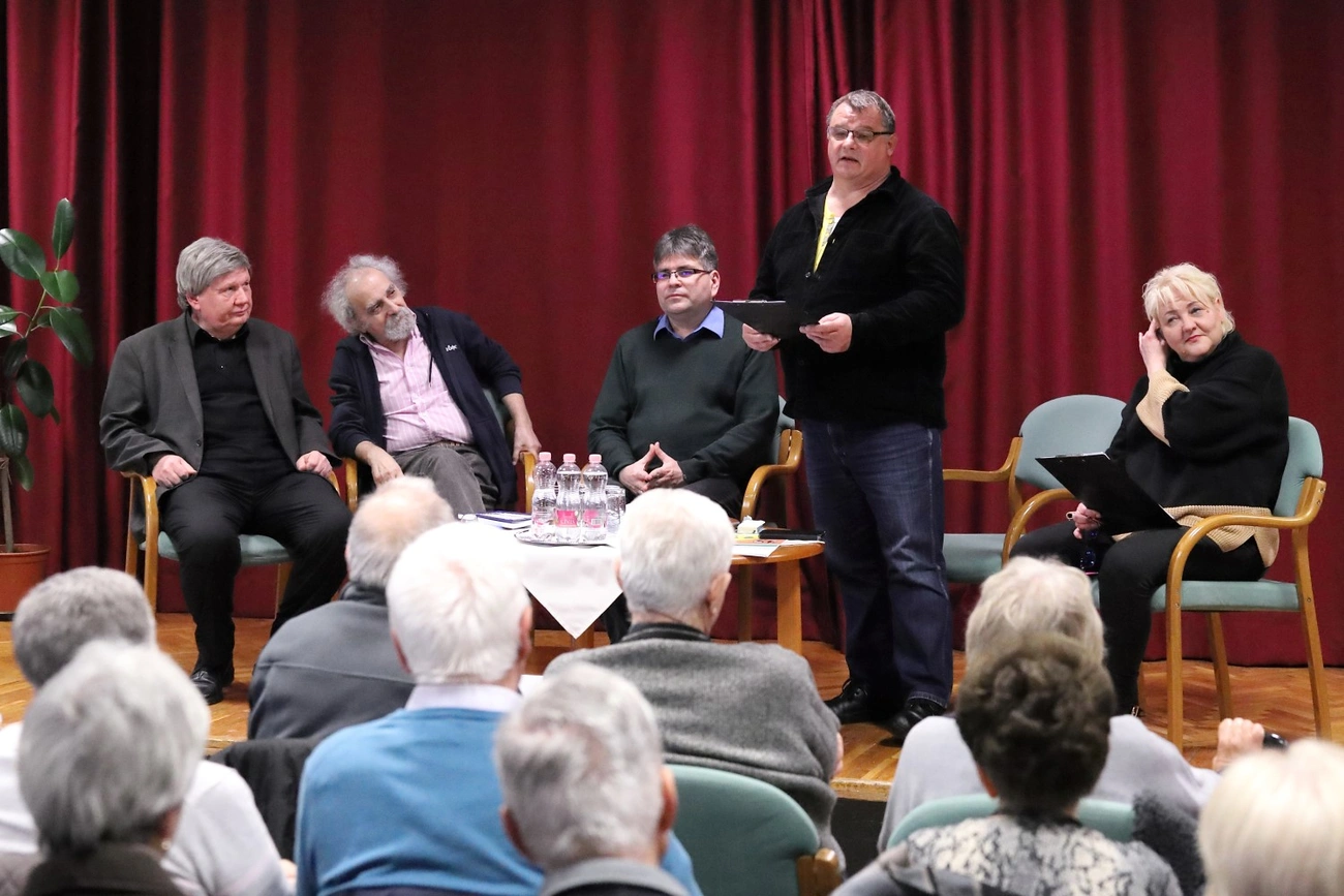 Az auktori bonmot-k között a jókora vicckötegből szemezgető Petri Nóra és Balázs István, illetve a moderátor, Brézai Zoltán igyekezett a megjelent rekeszizmokat kellő hőfokon tartani.