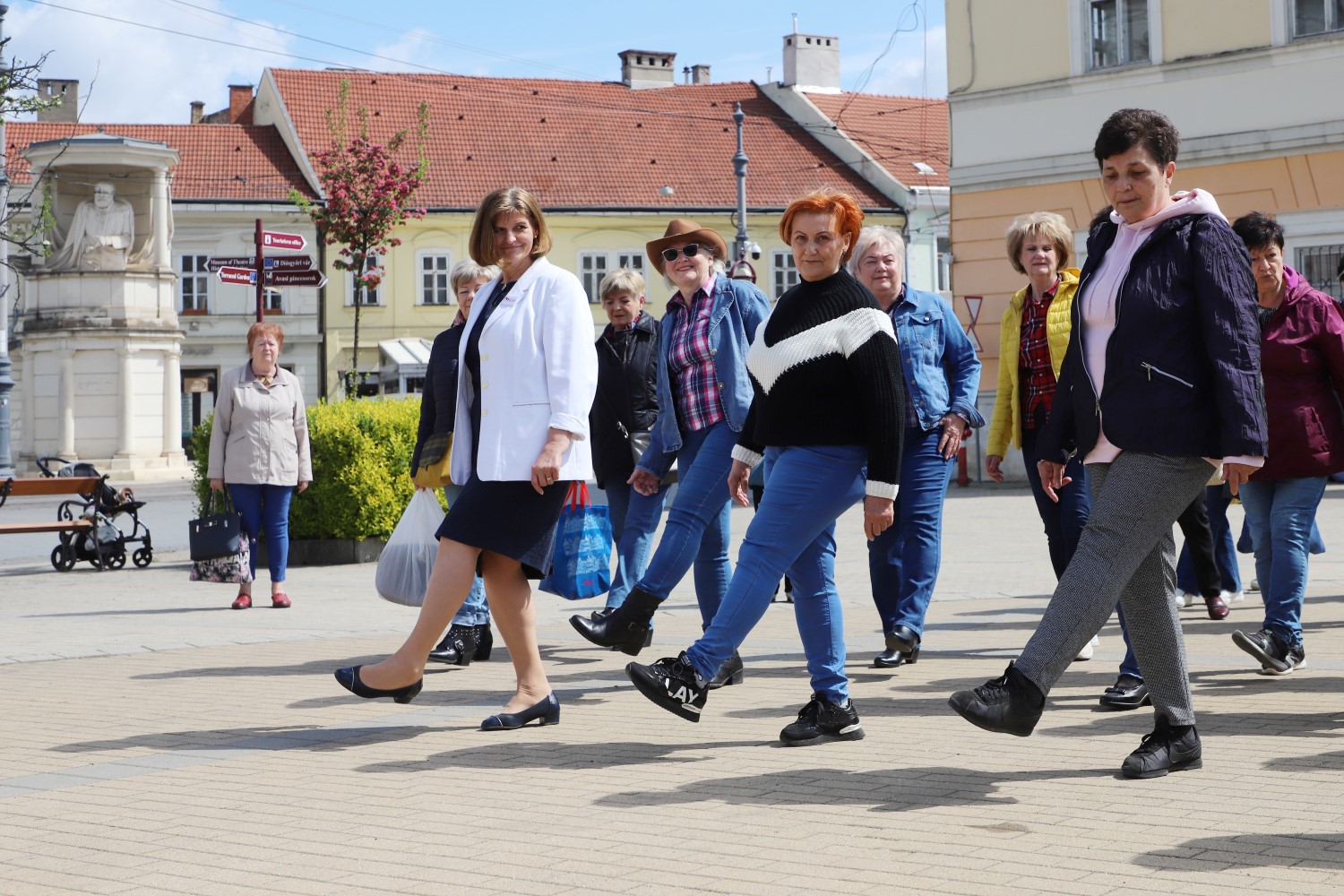 Stílszerűen vidám táncos délelőttön találkoztak óvodások, mazsorettek és szépkorú csoportok április 19-e, péntek napsütéses délelőttjén a Szent István téren a Borsod-Abaúj-Zemplén Vármegyei és Miskolc Városi Nyugdíjasok Érdekvédelmi Szövetsége (BAZ-NYÉSZ) szervezésében. A placcot többek között apró népi táncosok, cowboyok és táncoló „katonák” lepték el.