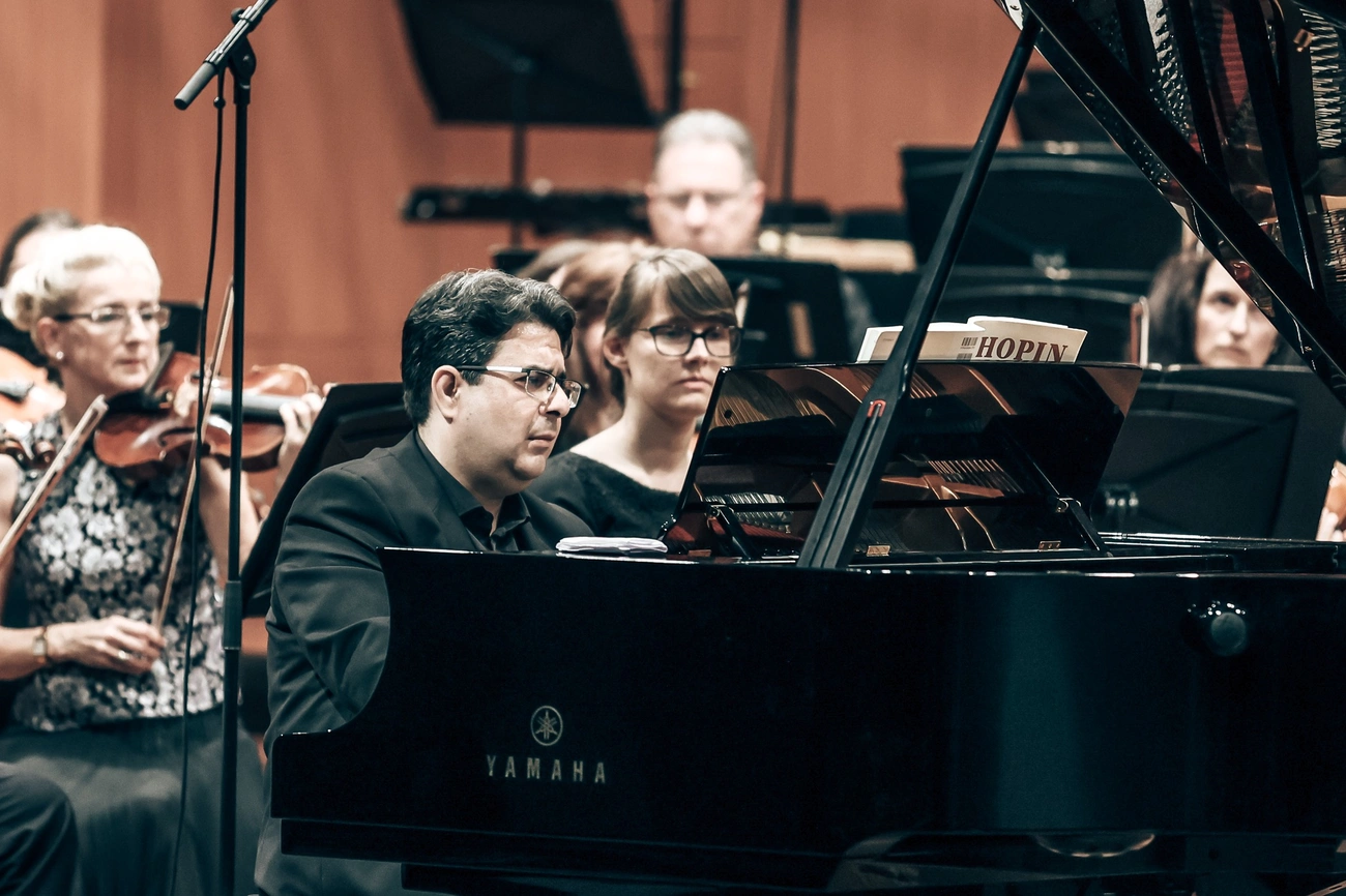 Farkas Gábor zongoraszólója hűen tolmácsolta a lengyel komponista lelkivilágát tükröző hangok sokaságát. Az első tétel (Allegro maestoso) jól ismert főtémáját rengeteg felvételen vagy koncerten hallhattuk már, azonban a zongoraművész előadásában szinte új életre kelt. A későbbi legvirtuózabb szekciók is teljes tisztaságban és mélységben szólaltak meg, pedálhasználata is tökéletes egyensúlyban volt a játékkal. A második tétel (Romance: Larghetto) érzelemmel teli, bel canto stílust tükröző dallama ugyancsak mesteri módon szólalt meg, hűen annak elvárt karakteréhez: a zeneszerző titkolt szerelmi vallomást fogalmazott meg benne (csakúgy, mint a második zongoraverseny lassú tételében), ugyanakkor elővetíti a későbbi chopini noktürnök hangulatvilágát. A harmadik tétel (Rondo: Vivace) már korábban említett táncos karaktere kitűnően érezhető volt Farkas Gábor elmélyült játékán. Tökéletesen együtt tudott működni a zenekarral és a műhöz, illetve a szerzőhöz méltó előadás zárlata volt a concertot befejező briliáns E-dúr passzázs.