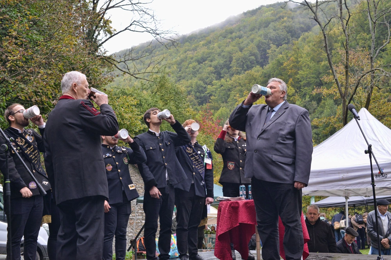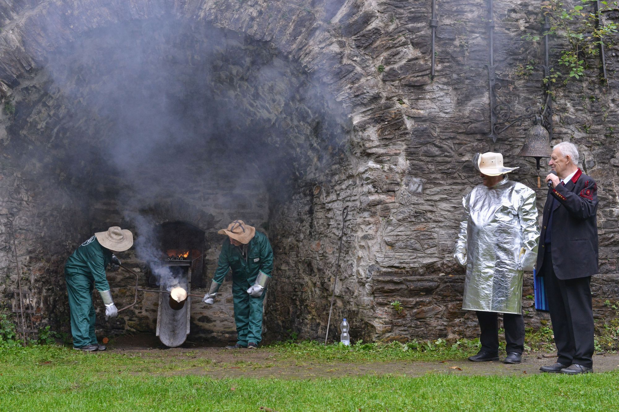 A tiszteletbeli kohászavatást koccintásokkal pecsételték meg, aztán jött a csapolás a kohónál. Ezt a volt polgármester szakszerűen végrehajtotta, igazolva érdemességét és megkapta az ezt igazoló tanúsítványt.