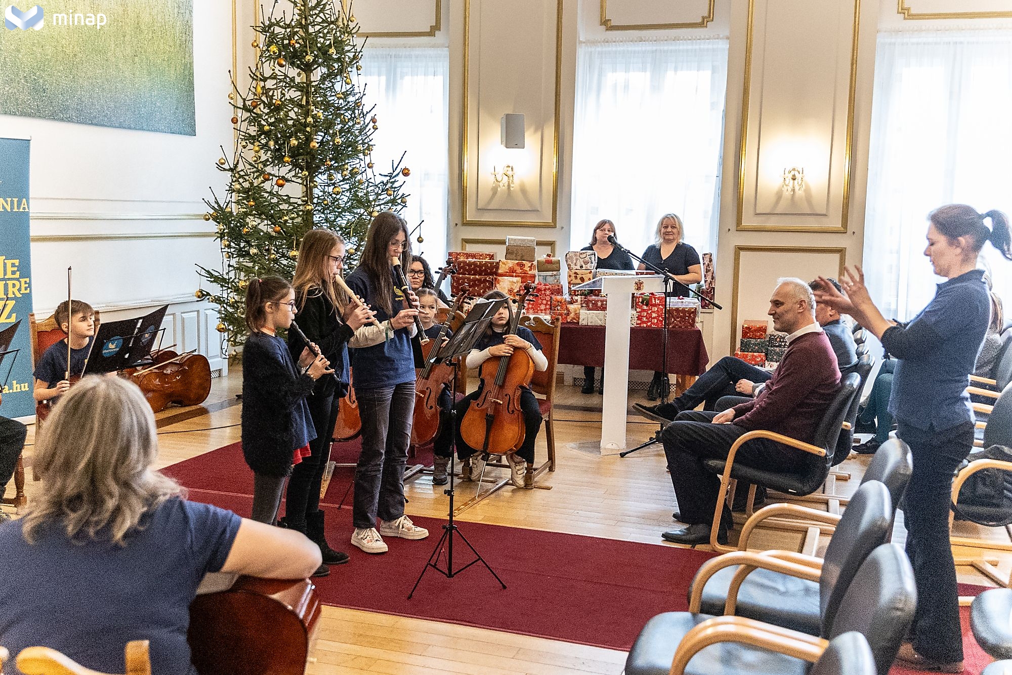 Az önkormányzat hagyományos cipősdoboz akciója keretében megajándékozta a Symphonia Alapítvány növendékeit december 17-én, kedd délelőtt a városházán. Az alapítvány két miskolci iskolájából érkeztek gyerekek, akik cserébe koncertet adtak „Karácsonyi varázslat” címmel, énekléssel, tánccal, furulyaszóval, vonós és rendhagyó ütő hangszerekkel.