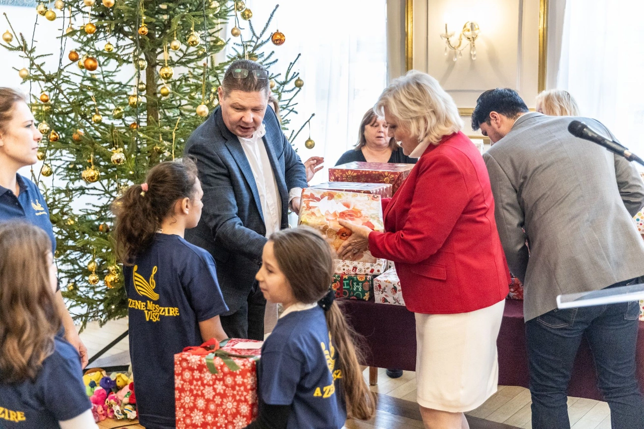 „A mai nap különleges. A városházán minden évben cipősdoboz akció keretében gyűjtünk hátrányos helyzetű gyerekeknek. Amikor összegyűlnek a csomagok, akkor kiválasztunk egy-egy intézményt, vagy iskolát, akiknek fölajánljuk ezeket az ajándékokat. Az idén a Symphonia Alapítvány növendékeire esett a választásunk. A Martin János Technikum, Szakképző Iskola, Szakiskola és Készségfejlesztő Iskolából érkeztek most hozzánk, ahol fogyatékkal élő gyerekek nevelkednek. Továbbá a Miskolci Herman Ottó Általános Iskola és Alapfokú Művészeti Iskolából, ahol hátrányos helyzetű gyerekek tanulnak” – mondta köszöntőjében Matiscsák Éva, Miskolc alpolgármestere.