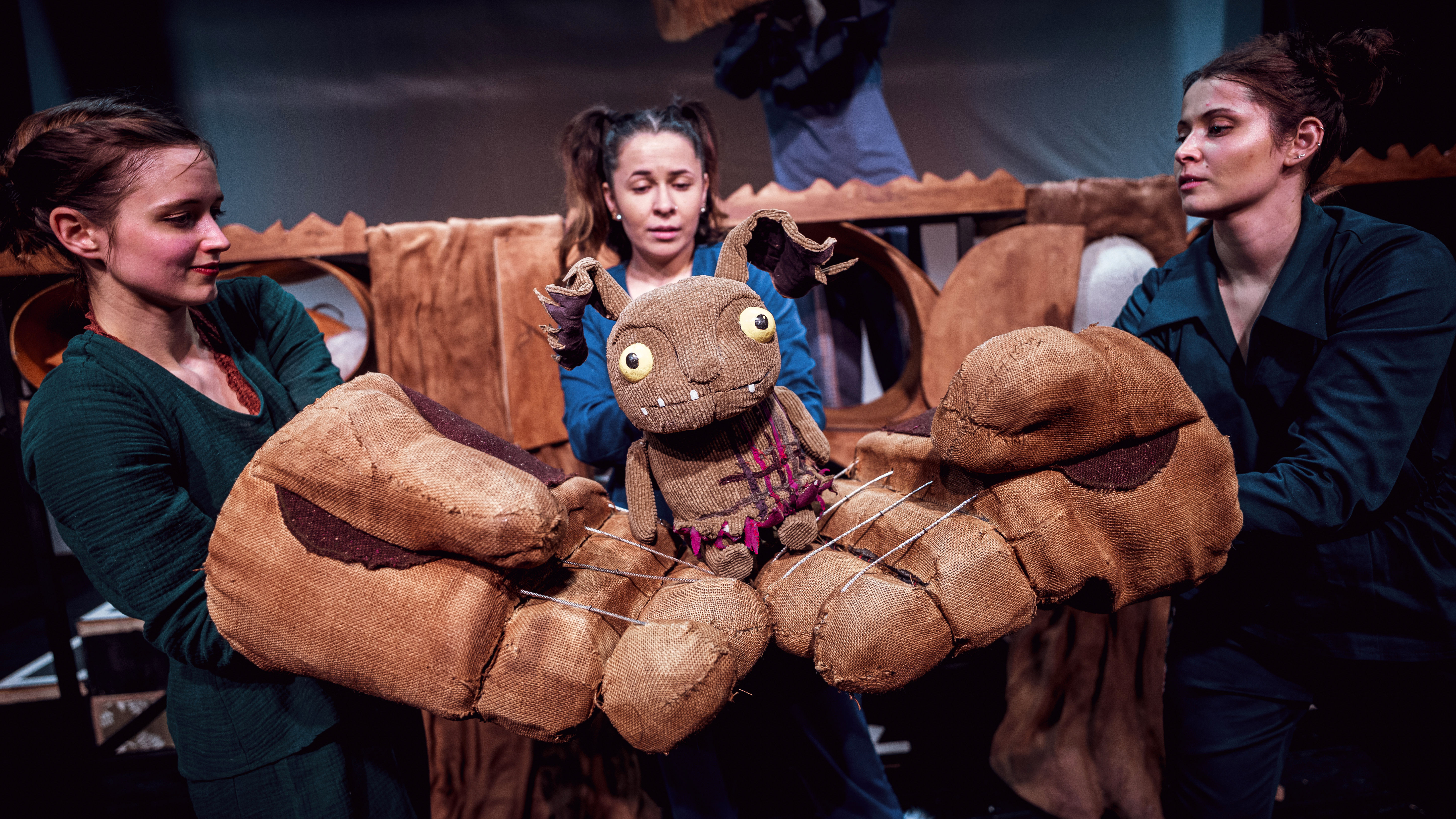 – A megrendelői igények mellett nagyon fontos, hogy – miután alaposan megismertem az eredeti mesét – vizuálisan erős alapötletem támadjon, amire fel lehet húzni később az egész előadást. Ez jelen esetben a Graffaló-báb különleges szerkezeti felépítése volt, amely három különálló testrészből áll, és életre keltéséhez három bábművész összehangolt munkája szükséges. Ez egy izgalmas, nem mindennapi formai megoldás, ami szerintem országos viszonylatban is ritka – nyilatkozta a rendező.