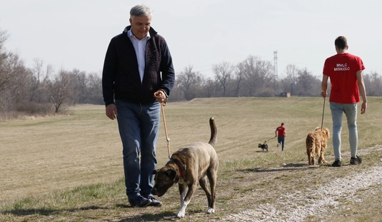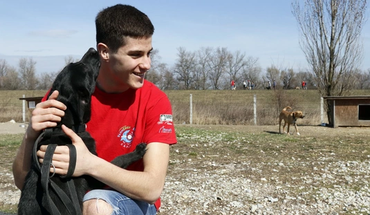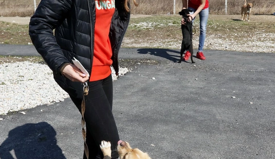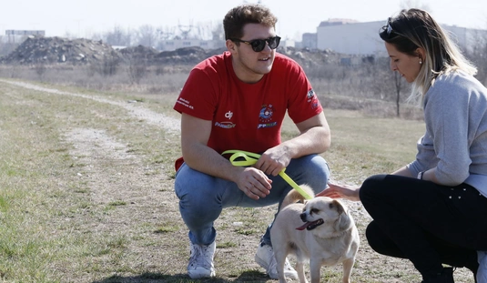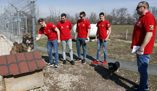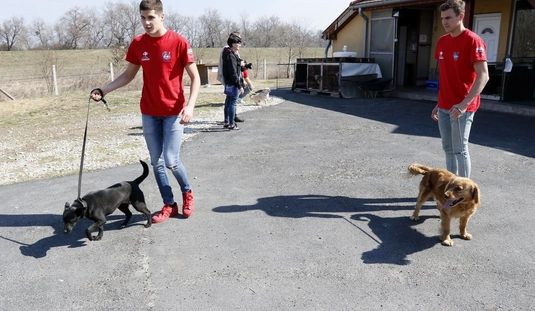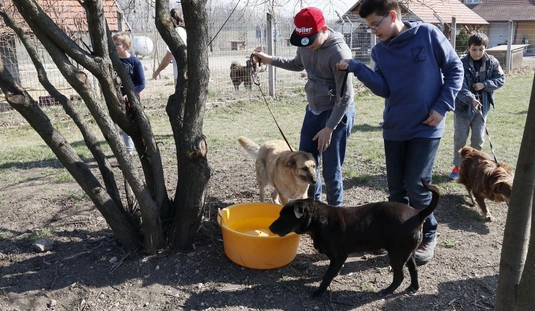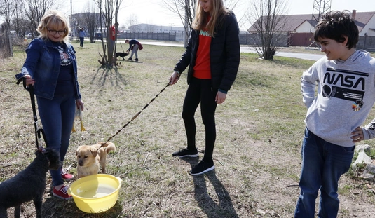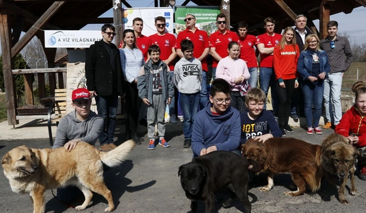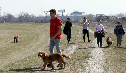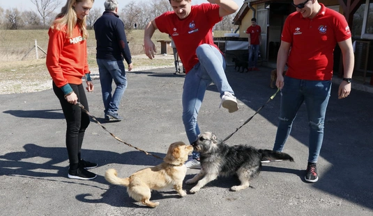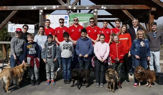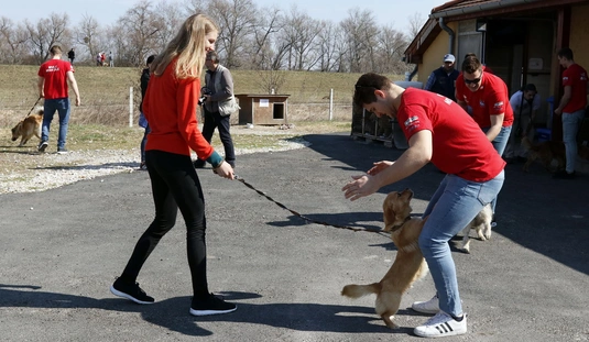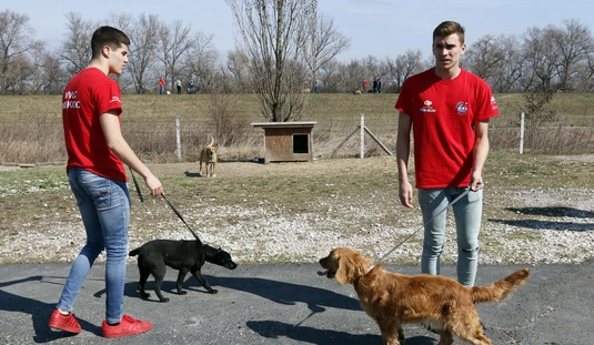 Kutyasétáltatás sportolókkal és diákokkal