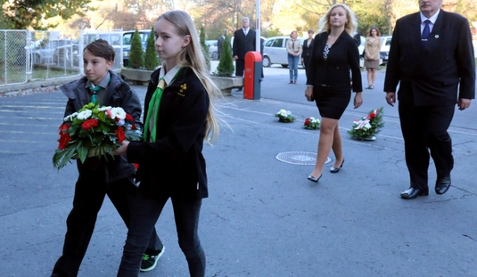 Koszorúzás a megyeházán és a Digép emléktáblánál