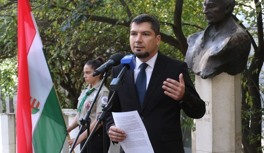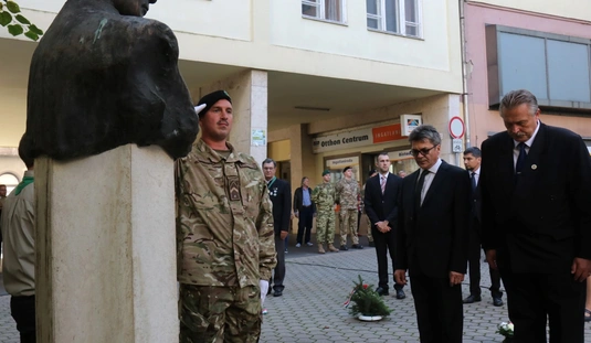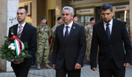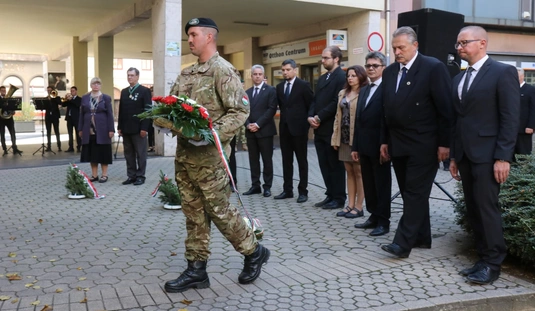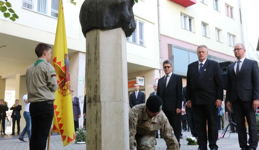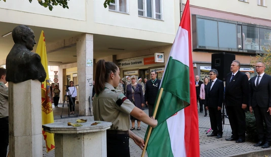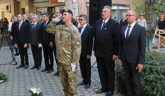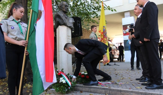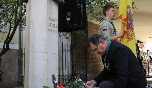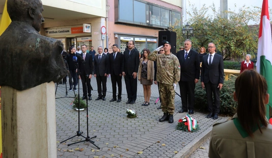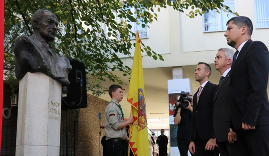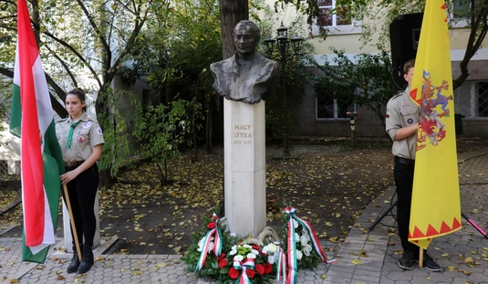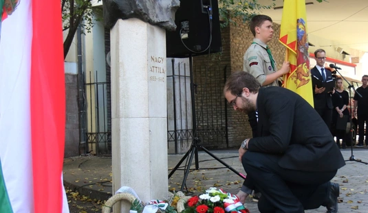 Koszorúzás Nagy Attila szobránál