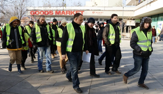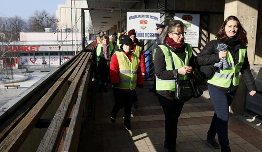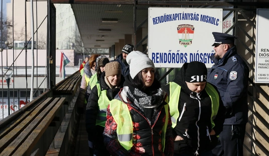Baráthegyi Majorságban dolgozók tiltakozása a Diósgyőri Rendőrőrsnél
