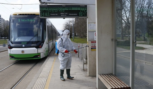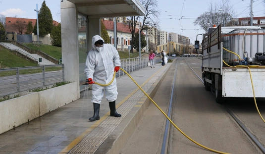 Villamosmegálló fertőtlenítése