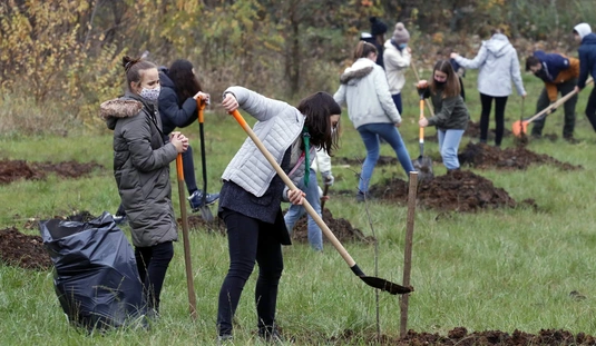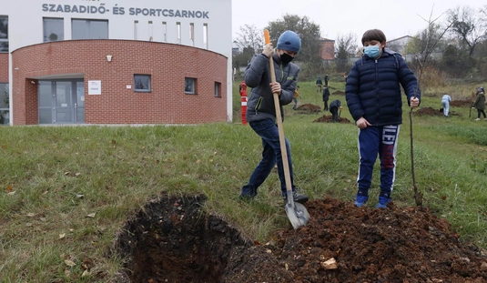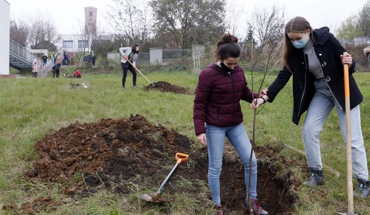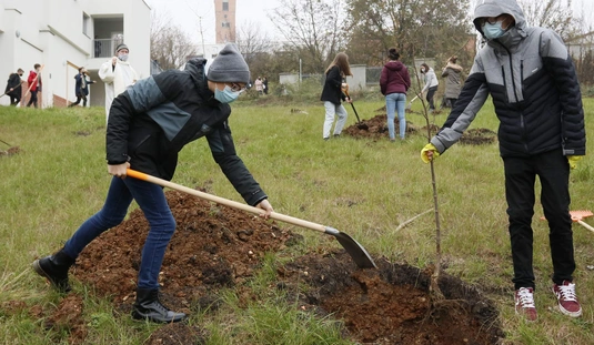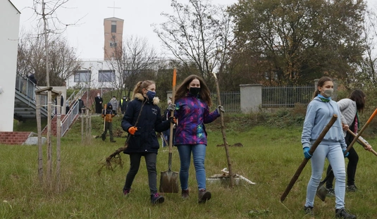 Faültetés a Jezsuita Gimnázium udvarán
