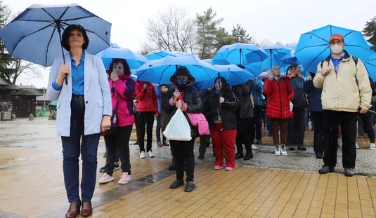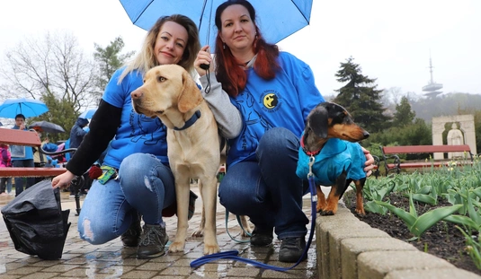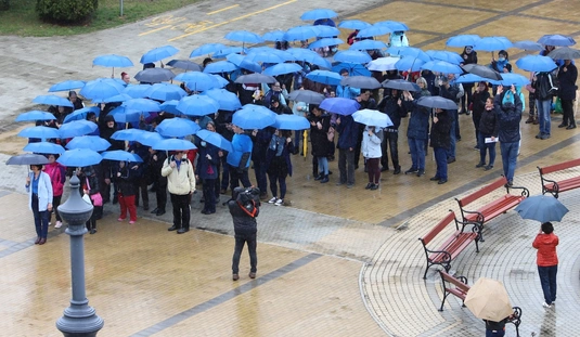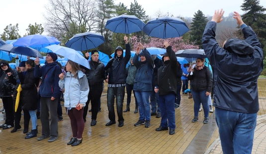 Kék esernyős flashmob az autizmus világnapján