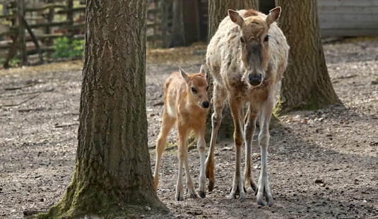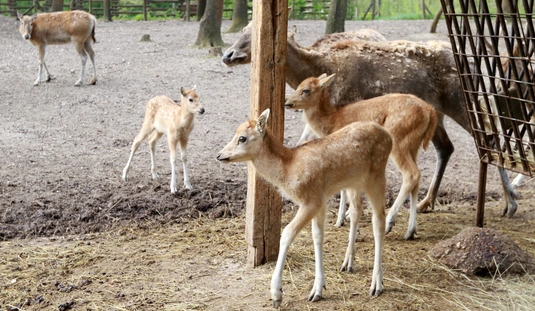 Dávid-szarvas borjak születtek a Miskolci Állatkertben