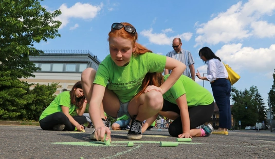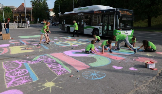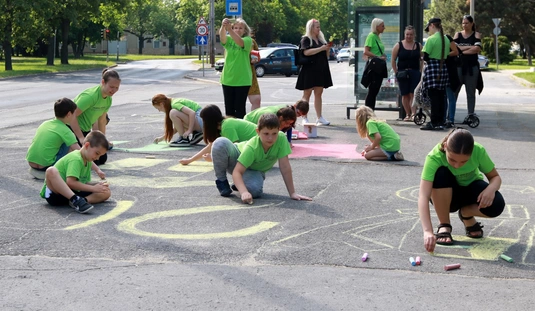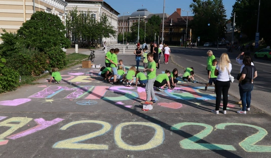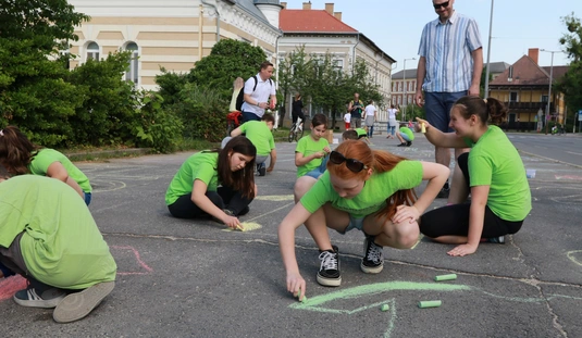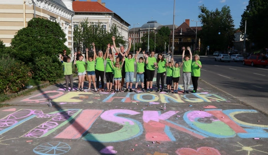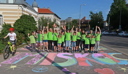 A Gyarmati Dezső Sport Általános Iskola aszfaltrajzzal várja a Tour de Hongrie mezőnyét