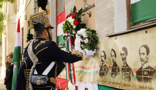 Aradi vértanúk - megemlékezés és koszorúzás a Batthyány emléktáblánál