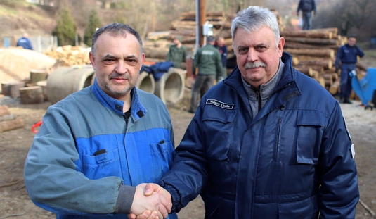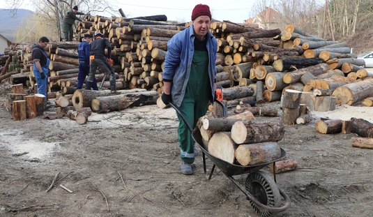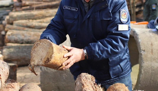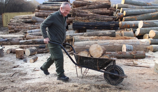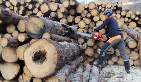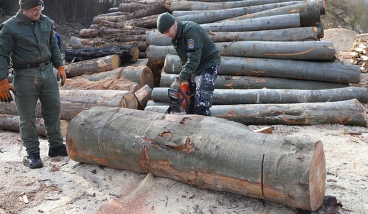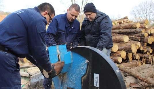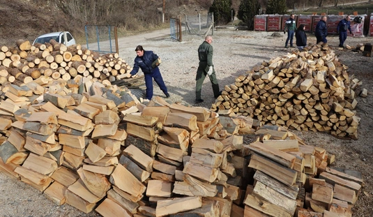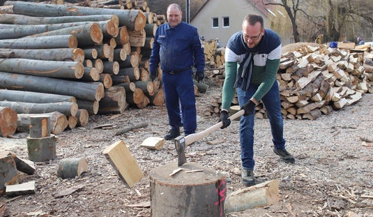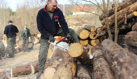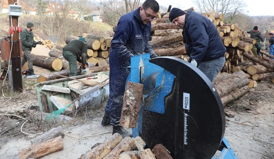 Rendészek tűzifa aprítása a Baráthegyi Majorságban