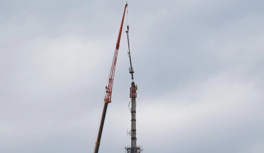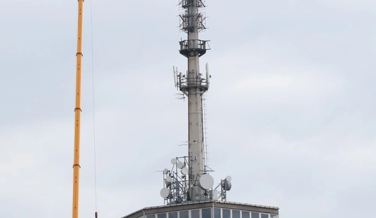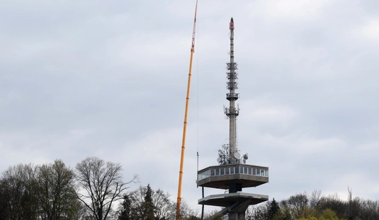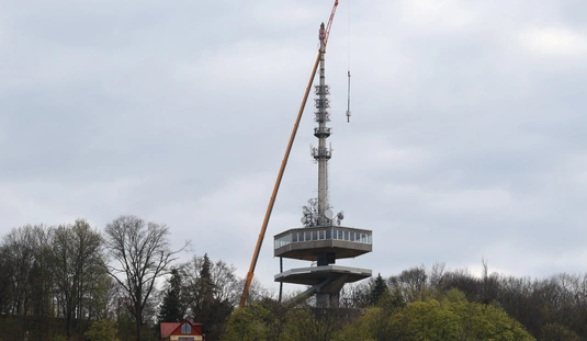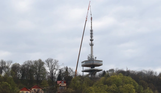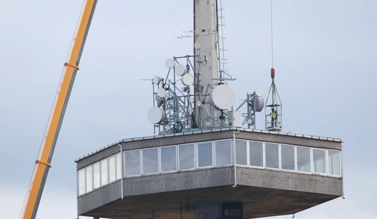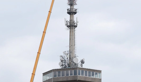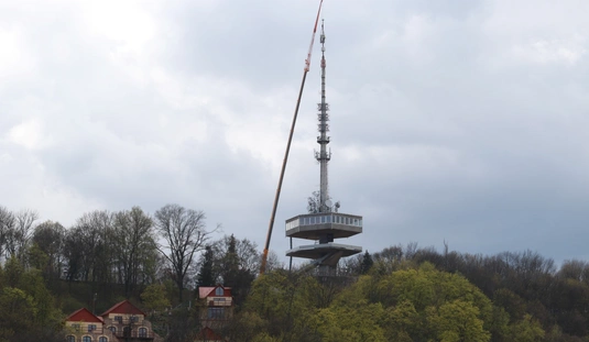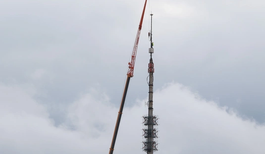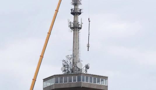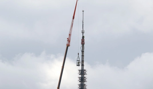 Óriásdaruval emelték le a tévétorony csúcsát