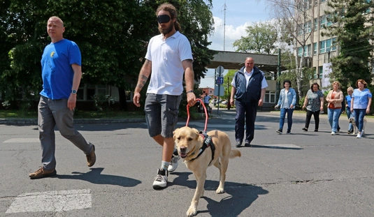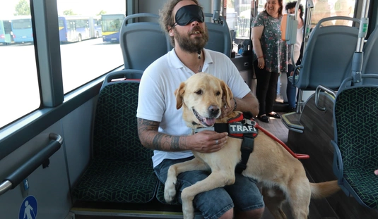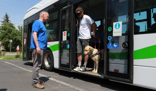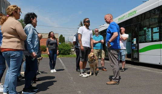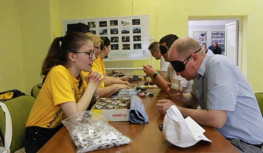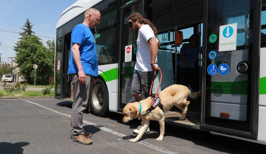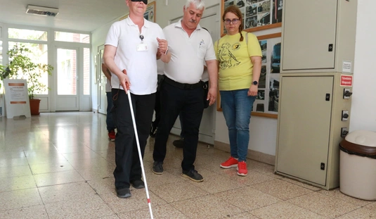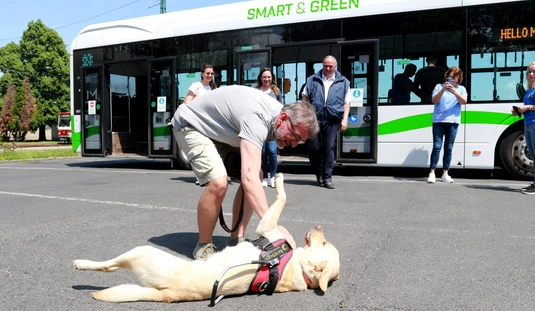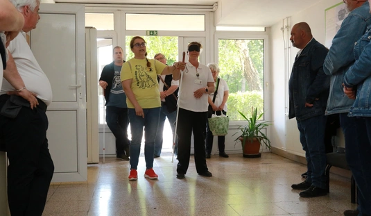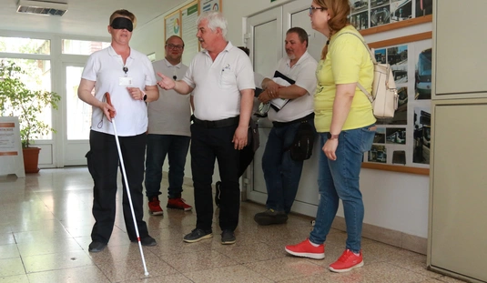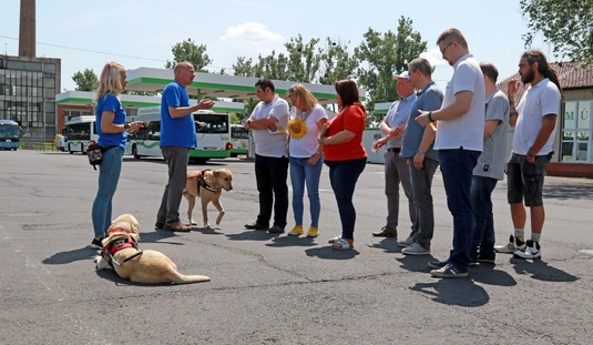A Baráthegyi Vakvezető és Segítő Kutya Iskola interaktív érzékenyítő tréningje az MVK telephelyen