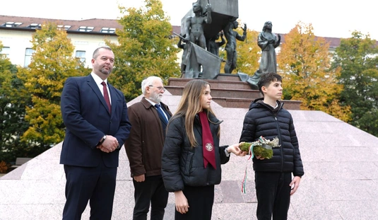 Az 1956-os harcosok előtt tisztelegtek a Hősök terén
