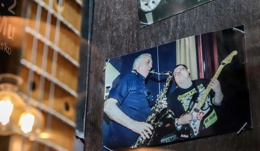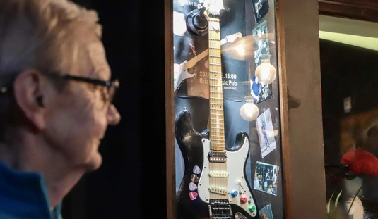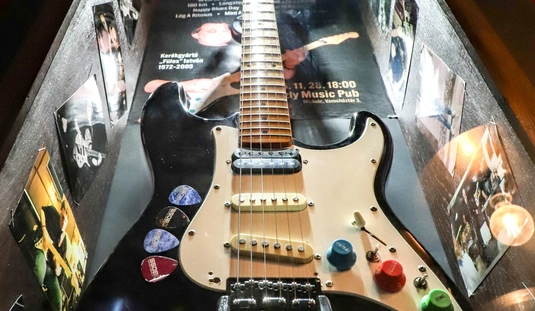 Kerékgyártó Füles István gitár vitrin avató a Grizzly Music Pubban