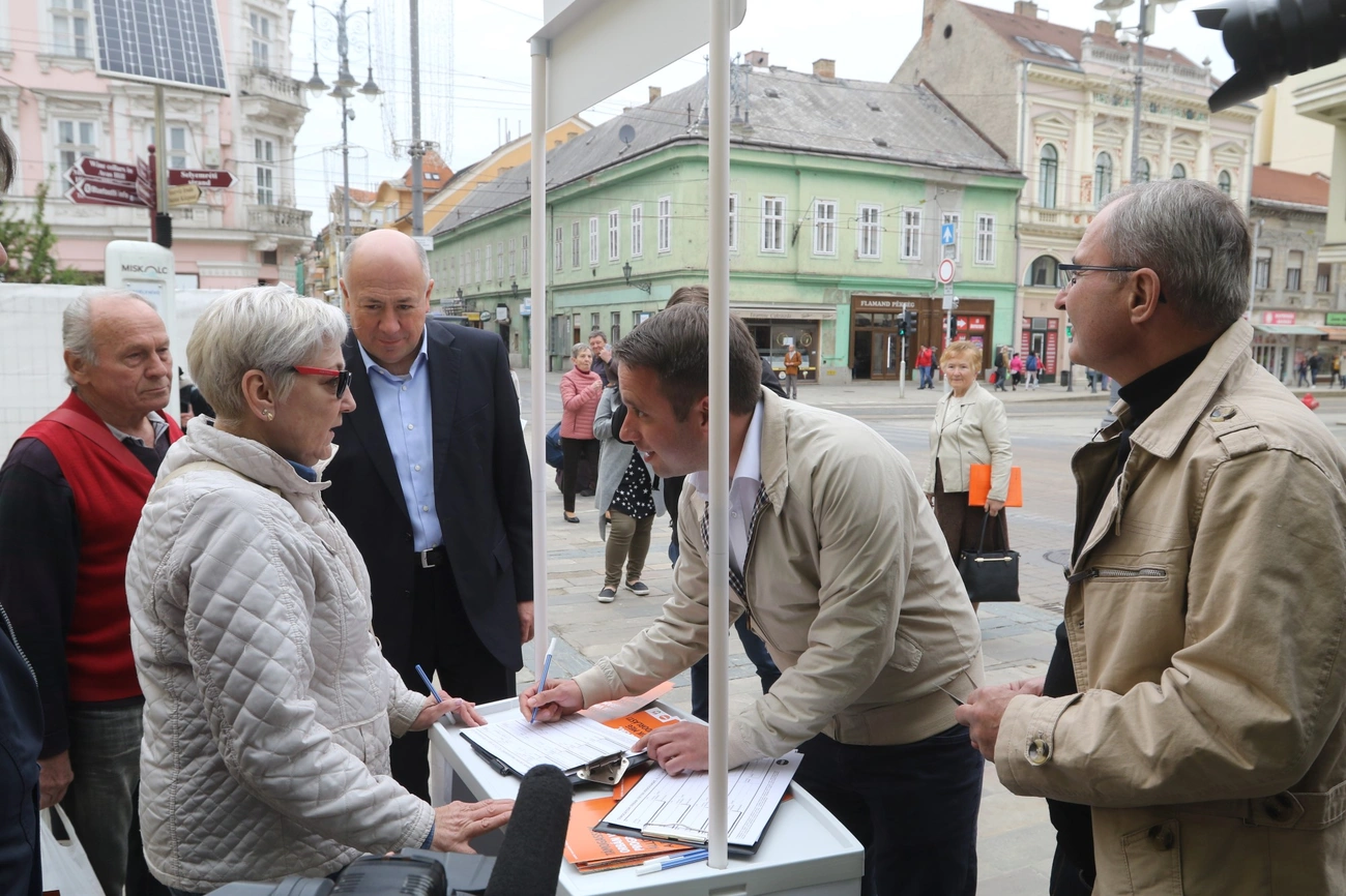 Miskolcon írta alá Orbán Viktor hétpontos programját Dömötör Csaba. A Fidesz országgyűlési képviselője, kedden délután érkezett a városba, majd Kriza Ákos, polgármester társaságában sétált le a Villanyrendőrnél felállított aláírásgyűjtő standhoz.