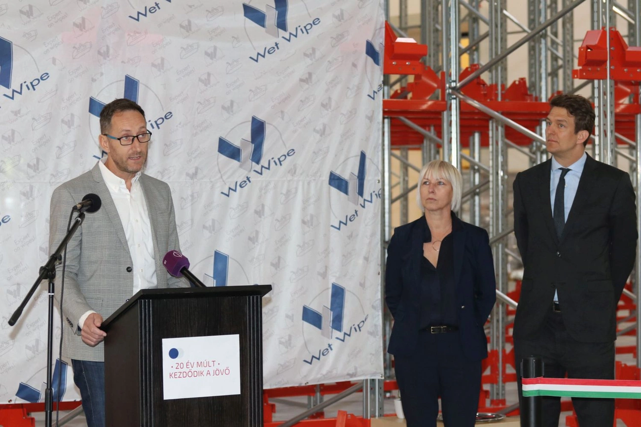 Kohányi Ferenc, a Wet Wipe Kft. ügyvezetője kiemelte: a most lezajlott fejlesztések során egy közel 3000 négyzetméteres automatizált magas raktár készült el, aminek köszönhetően megduplázódott a jelenlegi gyártóüzem alapterülete, amelybe hamarosan érkeznek az új, robotizált, automata minőségkontrollal felszerelt gyártógépek is.