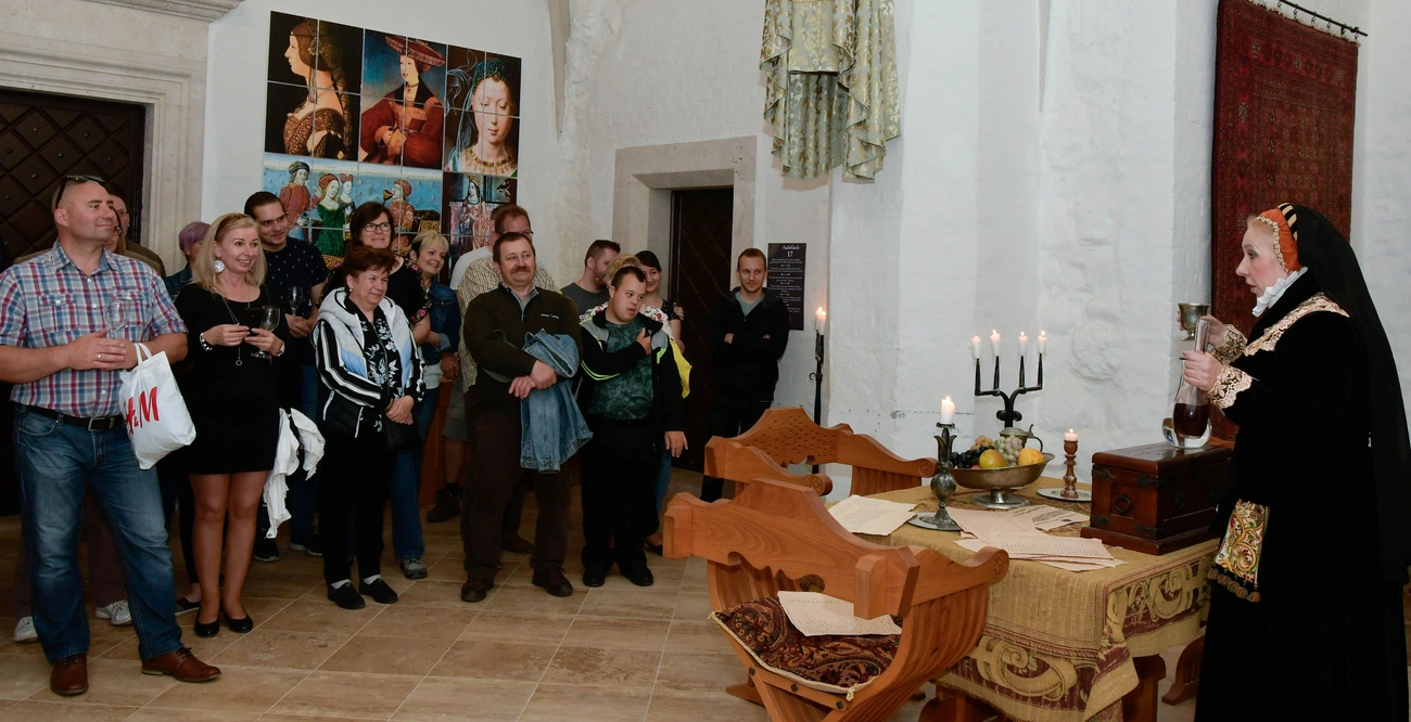 A könyvbemutató után a gyerekek pogácsát és diót eszegethettek, míg a felnőtt vendégek a Bűdi borászat kóstolóján vehettek részt. Ezt követte a rendhagyó tárlatvezetés a palota felső termeiben, ahol a vár népe mesélt részegesekről és bornemisszákról, a hegy levének élvezetéről. A vacsorát a borozóban költötték el a vendégek, akik arany csirkét ettek mentás zöldborsókrémmel, valamint Mátyás király kedvencével, a tejszínes tormamártással és friss cipóval. Mindehhez társult a középkori híres-neves fűszeres almás pite és természetesen történetek a középkori étkezésekről a menü mellé.