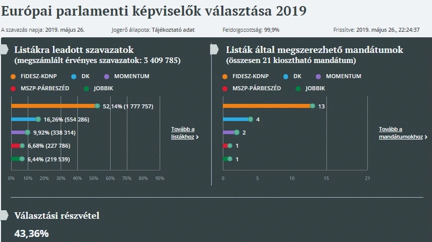 Öt magyarországi párt szerzett mandátumot