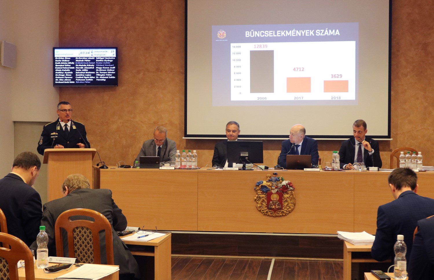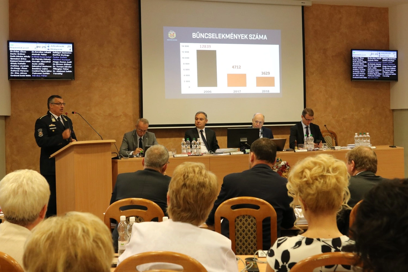 A beszámoló tartalmazza: a regisztrált bűncselekmények száma 3629-re csökkent – ez az elmúlt 9 év legalacsonyabb adata. A közterületen elkövetett bűncselekményekben is rekordalacsony mutatókról lehet beszámolni: tavaly 828 ilyen esetet regisztráltak. Szintén az elmúlt 9 év legjobb adatát hozta 2018 a rablások terén is: 24 ilyen eset történt, itt ráadásul kiemelkedő a nyomozati eredményesség: 82,6 százalék.