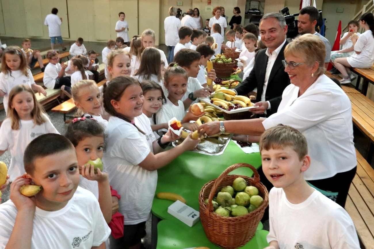 – Próbáljuk a gyerekeket a gyümölcsön keresztül az egészséges étkezés felé terelni – emelte ki Kiss János alpolgármester. Hozzátette: ez egy kiváló alkalom volt arra, hogy egyszerre okozzunk meglepetést és mutassunk utat az egészségesebb életmód felé.