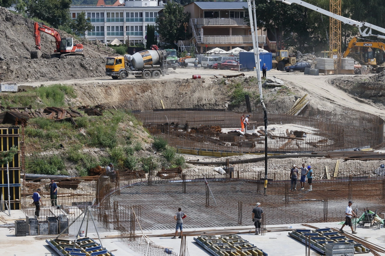 – Vasbetonszereléssel foglalkozunk most, illetve az alaplemez-öntést kezdtük el a héten, de a külső közmunkák is tartanak már másfél-két hónapja – tudatta, hozzátéve: a csapadékcsatorna, a szennyvíz- és az ivóvízgerinc is épül már.