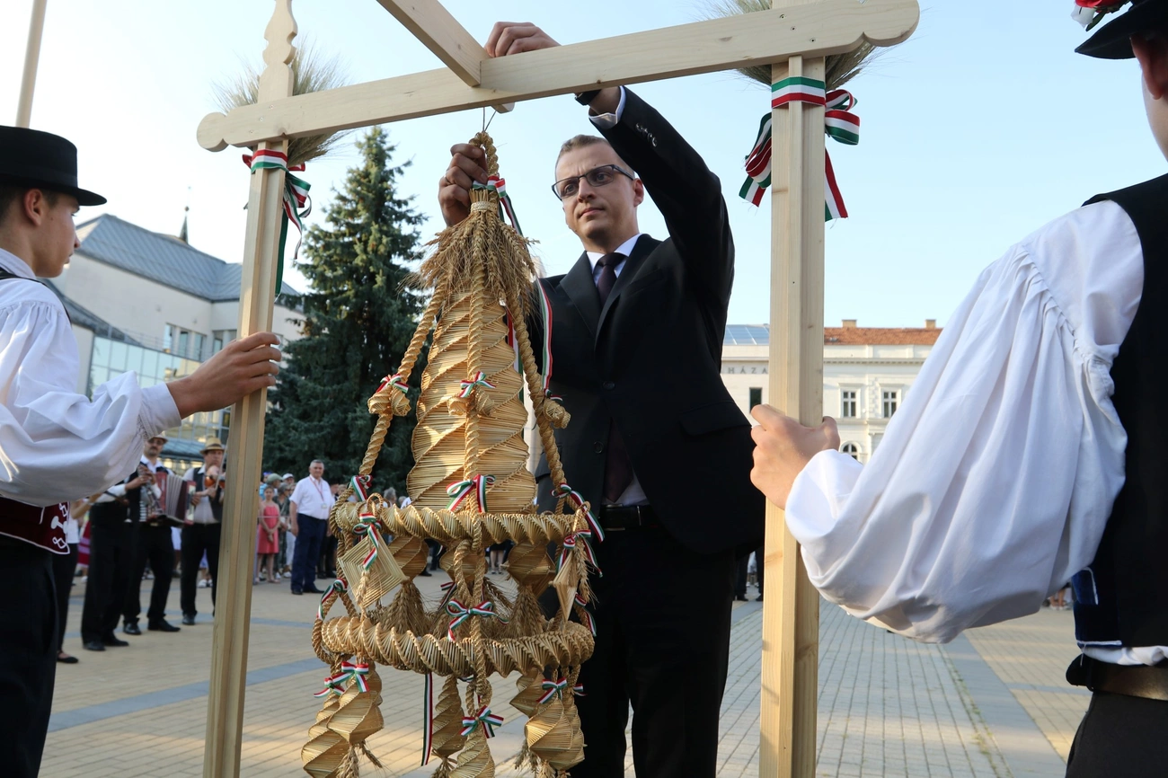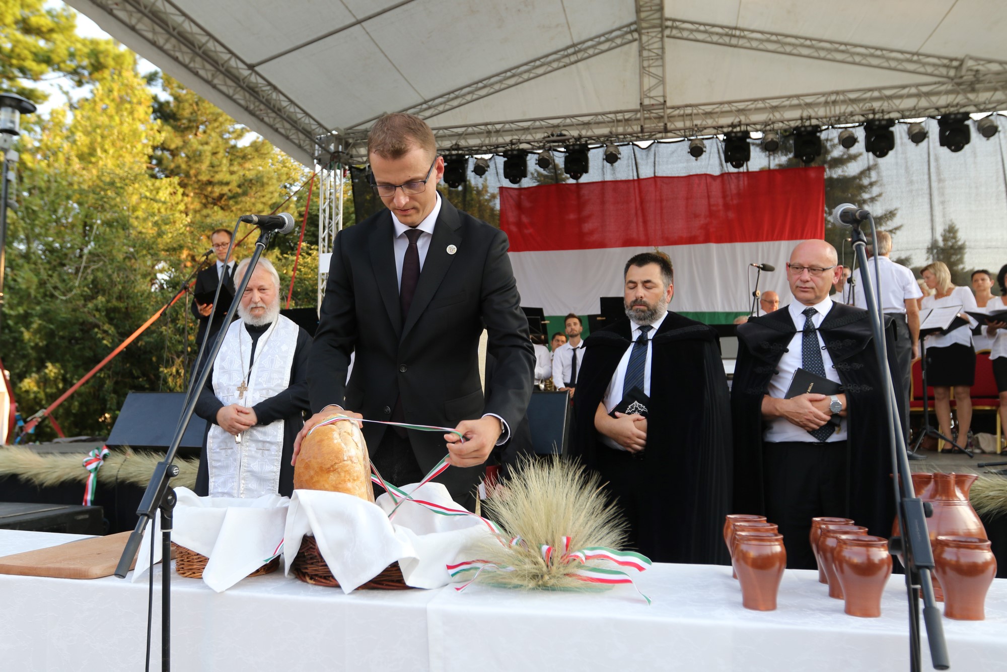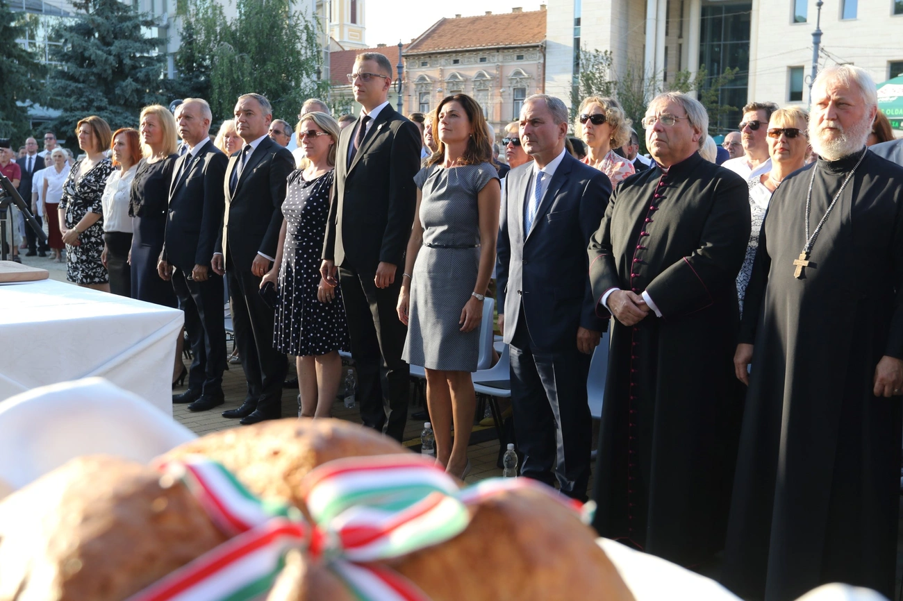 Az ünnepi beszédeket követően a történelmi egyházak képviselői megáldották, megszentelték az újkenyeret, majd Alakszai Zoltán megszegte a felszentelt kenyeret.